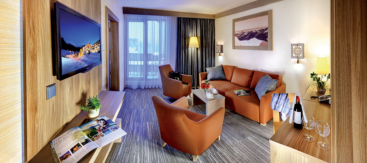 TV sat., telefón, fén, trezor, wi-fi pripojenie na internet, minibar, župany a papuče do wellness