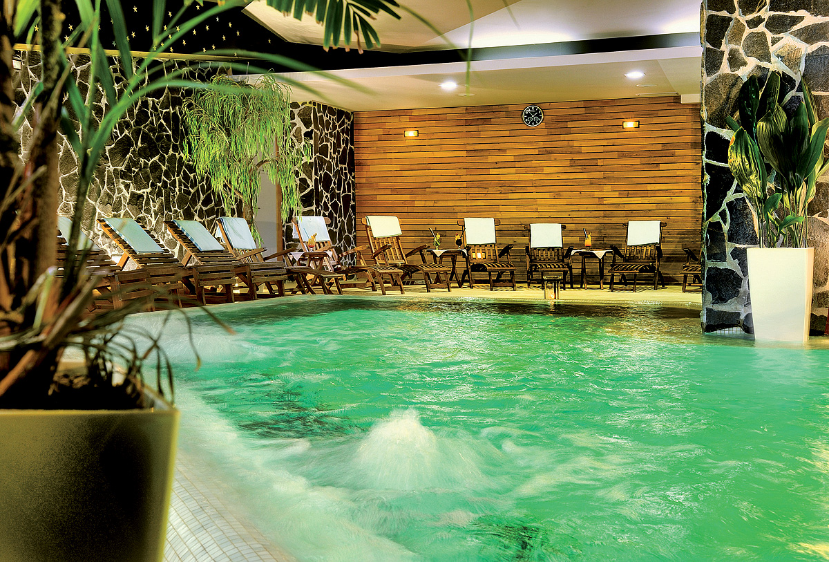 bazén# 12 x 6 m s masážnymi tryskami, 2x vonkajšia vírivka# až pre 6 osôb, fínska sauna#, 2x vonkajšia fínska sauna#, aróma sauna#, para# so soľou, infrakabína#, hydromasážna sprcha#, relaxačný kútik# s ležadlami, masáže*, kozmetické služby*, biliard*, stolný futbal*, stolný hokej*, služby označené # môžu využívať deti do 12 rokov len v sprievode dospelej osoby a len do 19.00 hod.; v rámci relaxačného centra sú zdarma ponúkané tiež uteráky a plachty