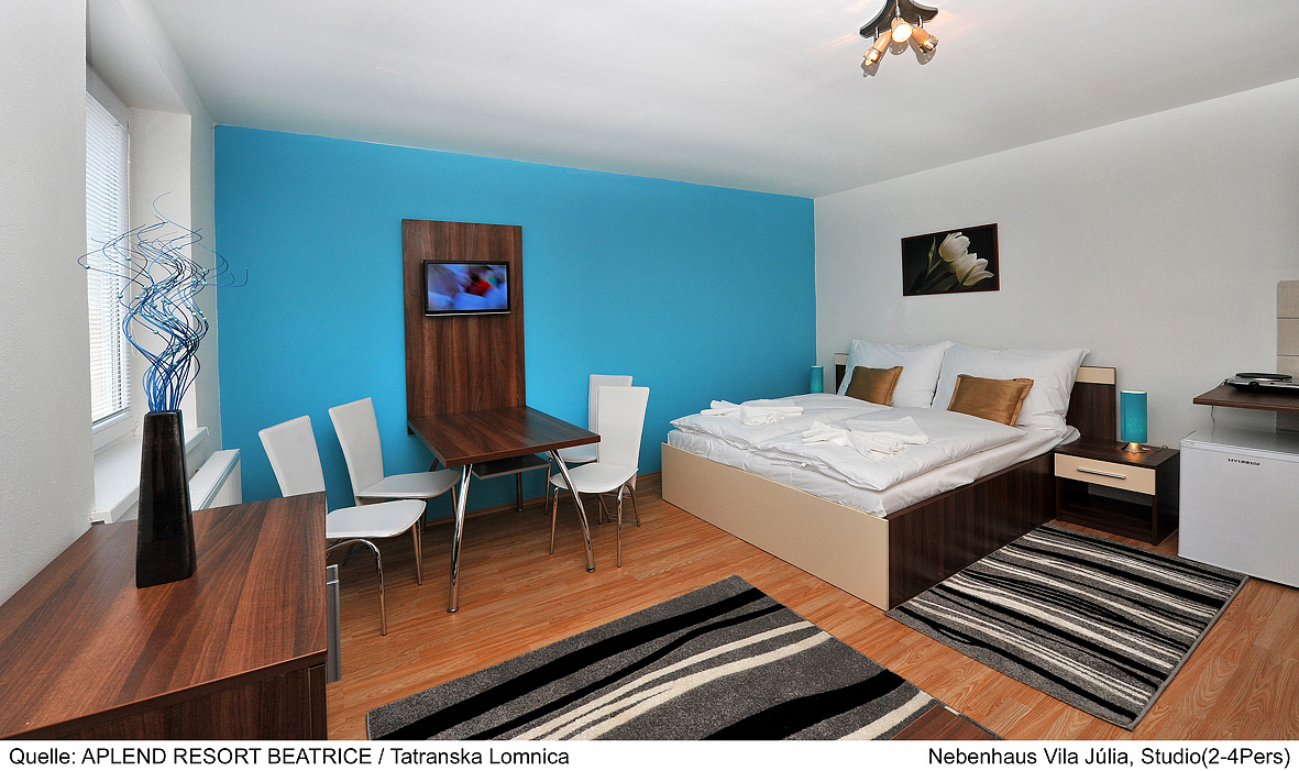25 až 40 m² 1 spálňa s manželskou posteľou (môže byť i formou mazonetu) a 1 samostatným lôžkom, obývacia izba s kuchynským kútom a rozkladacím gaučom pre 2 osoby, sociálne zariadenie spravidla so sprchou, balkón
