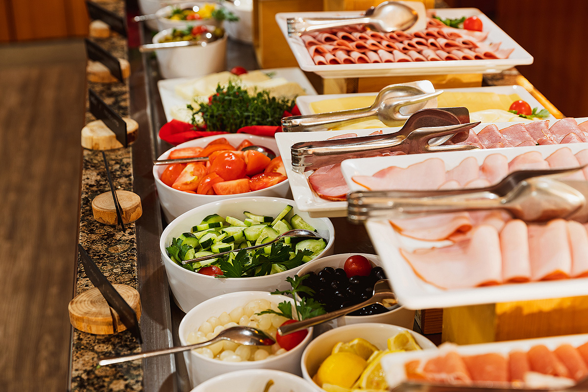 fakultatívne - formou medzinárodného bufetu v hotelovej reštaurácii; nápoje za poplatok (nutné objednať vopred)