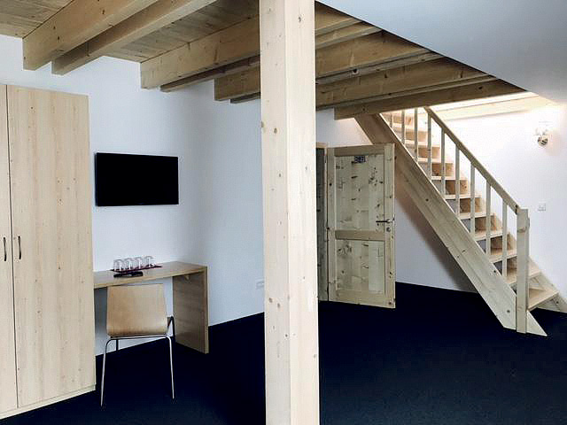 izba s manželskou posteľou, 3. a 4. lôžko pevné, sociálne zariadenie; za príplatok je možné objednať aj izbu až pre 6 osôb