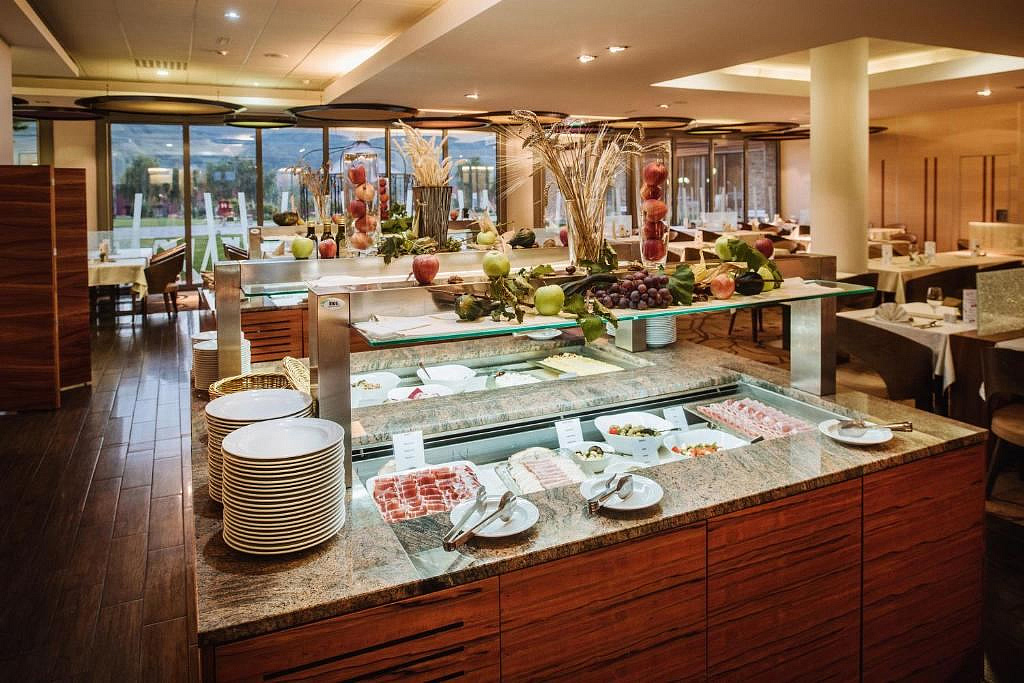 formou bufetu, nápoje za poplatok; 1x týždenne tematická večera