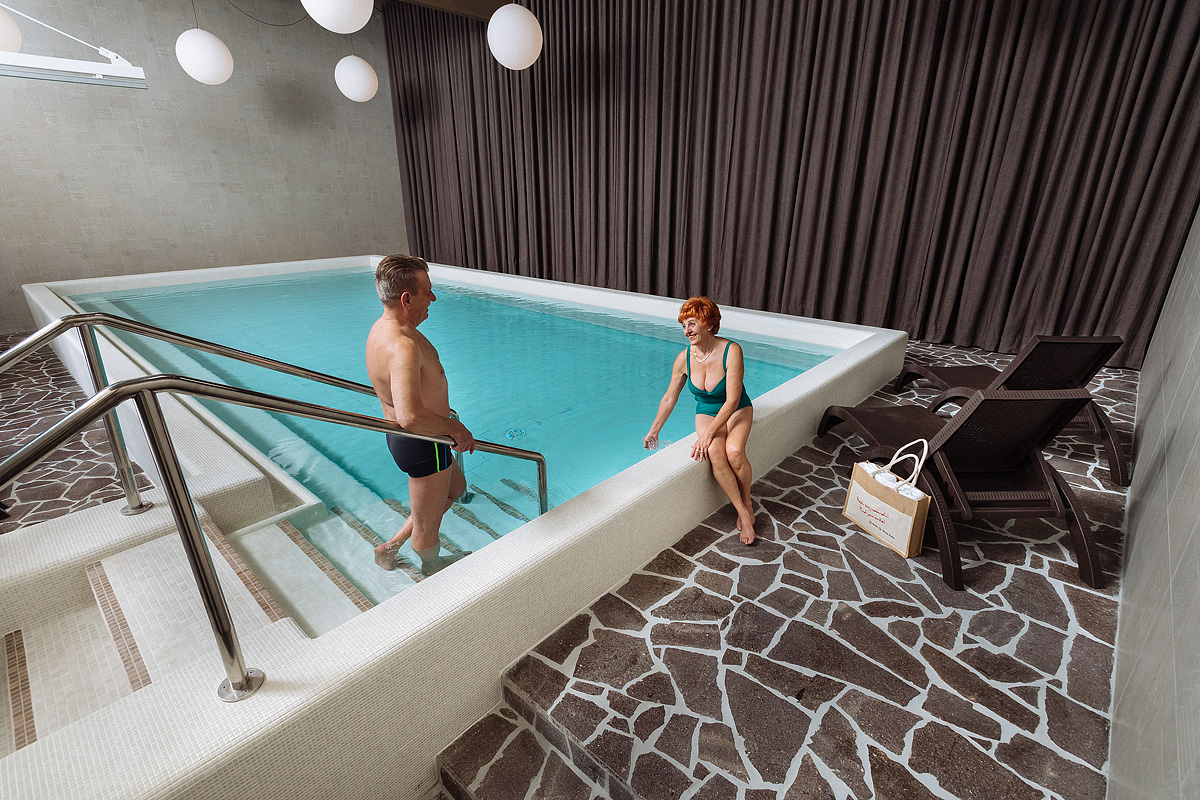 K dispozícii sú aj masážne vírivky a na odpočinok láka presklená zimná záhrada s ležadlami.