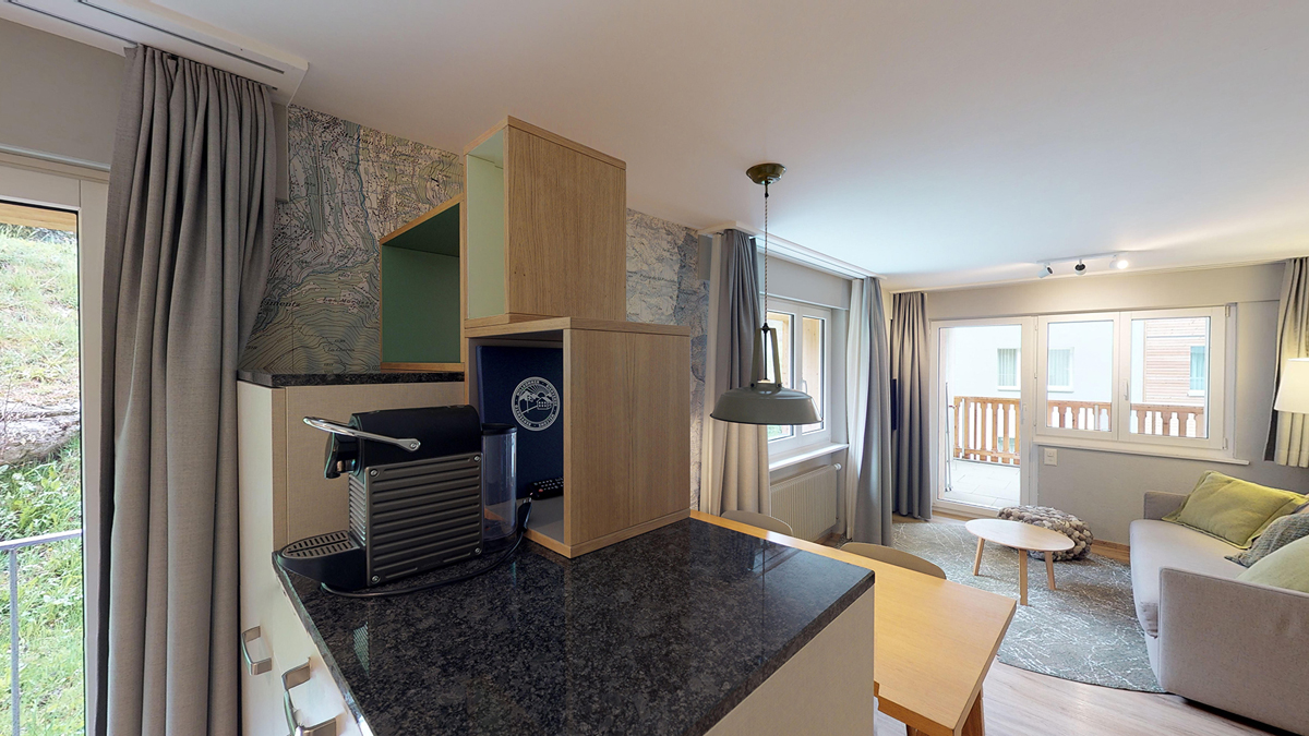 bilo 4 type B - 38 m² - spálňa s 2 samostatnými lôžkami, obývacia izba s kuchynským kútom a rozkladacím gaučom pre 2 osoby, sociálne zariadenie, balkón; apartmán spravidla v podkroví so šikmým nižším stropom