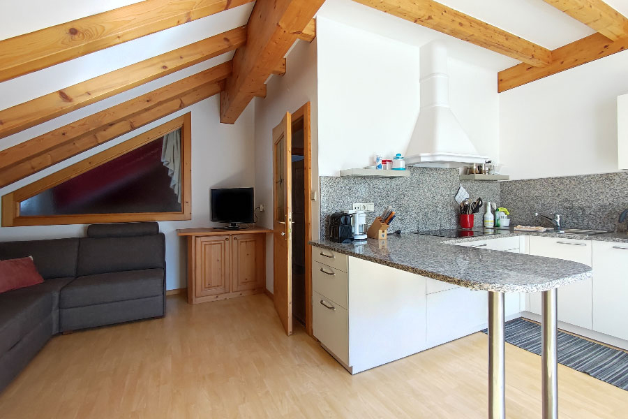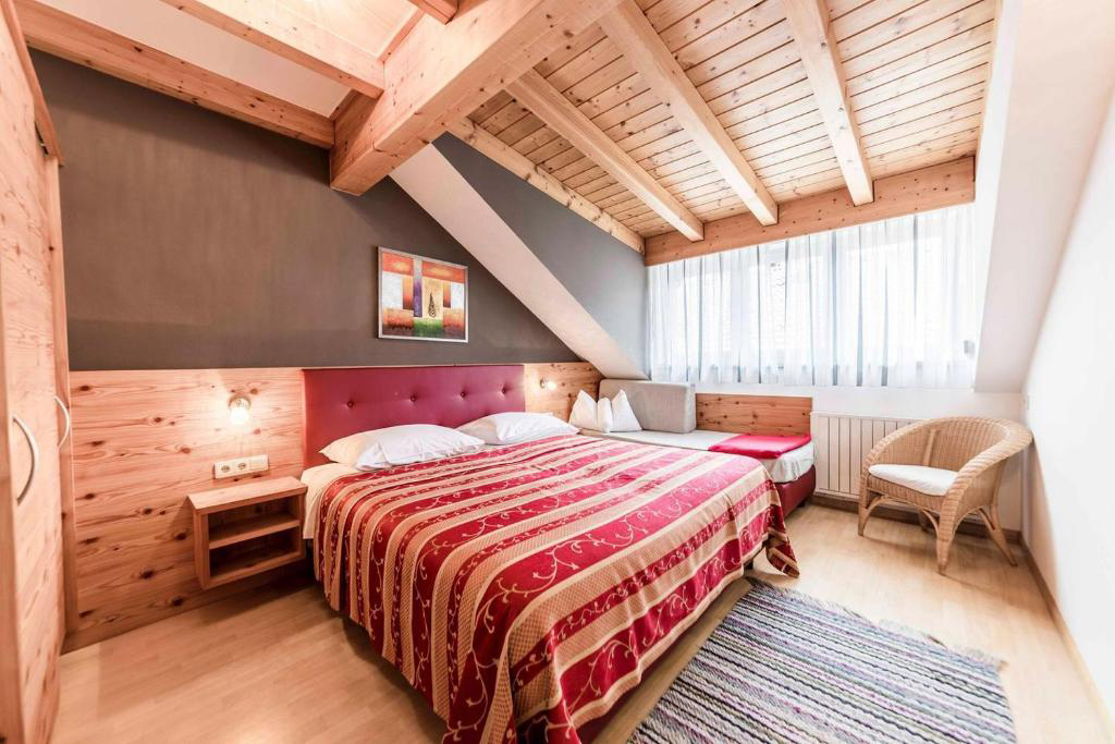 61 m² – 1 spálňa s manželskou posteľou a 1 samostatným lôžkom, 1 spálňa s 2 samostatnými lôžkami, obývacia izba s kuchynským kútom, sociálne zariadenie, balkón; apartmán sa nachádza v podkroví