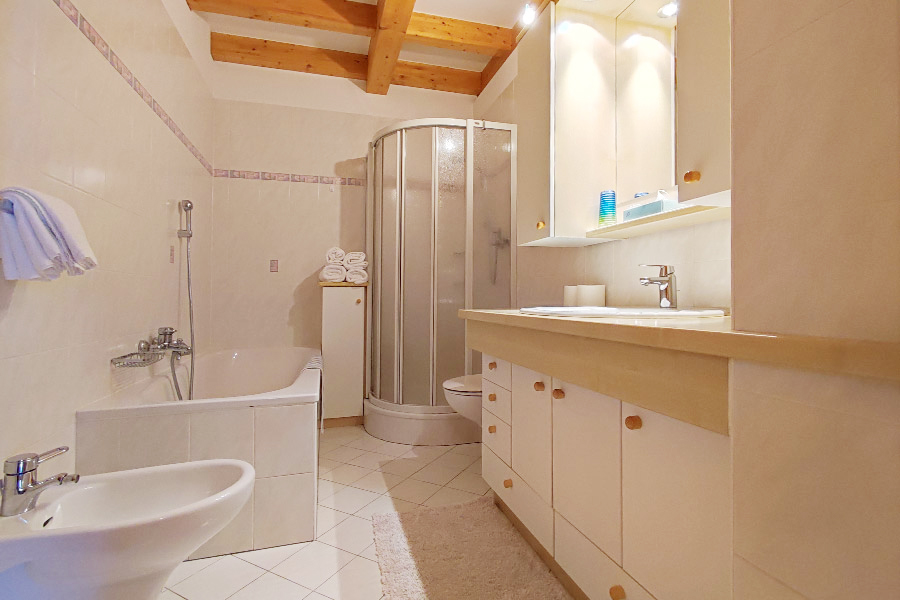 70 m² - 2 spálne s manželskou posteľou a 1 samostatným lôžkom, obývacia izba s kuchynským kútom, sociálne zariadenie so sprchou a vaňou, 1x samostatné umývadlo a WC, balkón