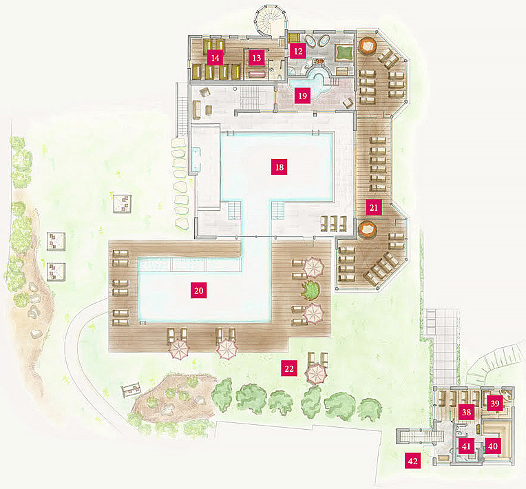 upresnenie - Dependancia Mühlenhof je súčasťou hotelového rezortu Hotel Bad Moos Dolomites Spa Resort 4*S a nachádza sa 50 m od hlavnej budovy, v ktorej sú k dispozícii všetky nižšie uvedené služby
