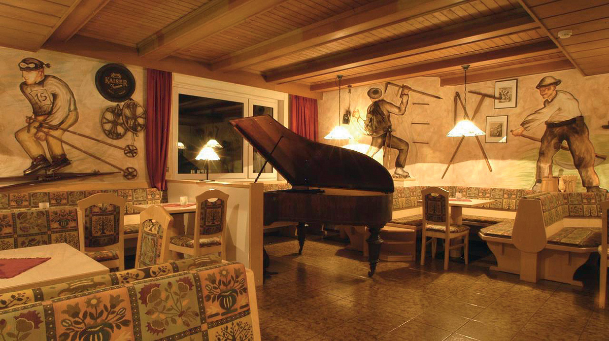 servírované menu s výberom z 3 teplých predjedál a 3 hlavných jedál s prílohou, šalátový bufet, 2x týždenne dezerty formou bufetu, nápoje za poplatok; 1x týždenne polievky či tirolské knedlíky formou bufetu; pravidelné tématické večere