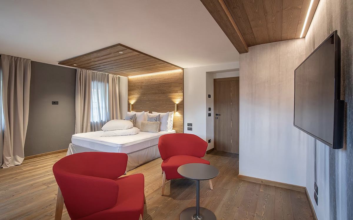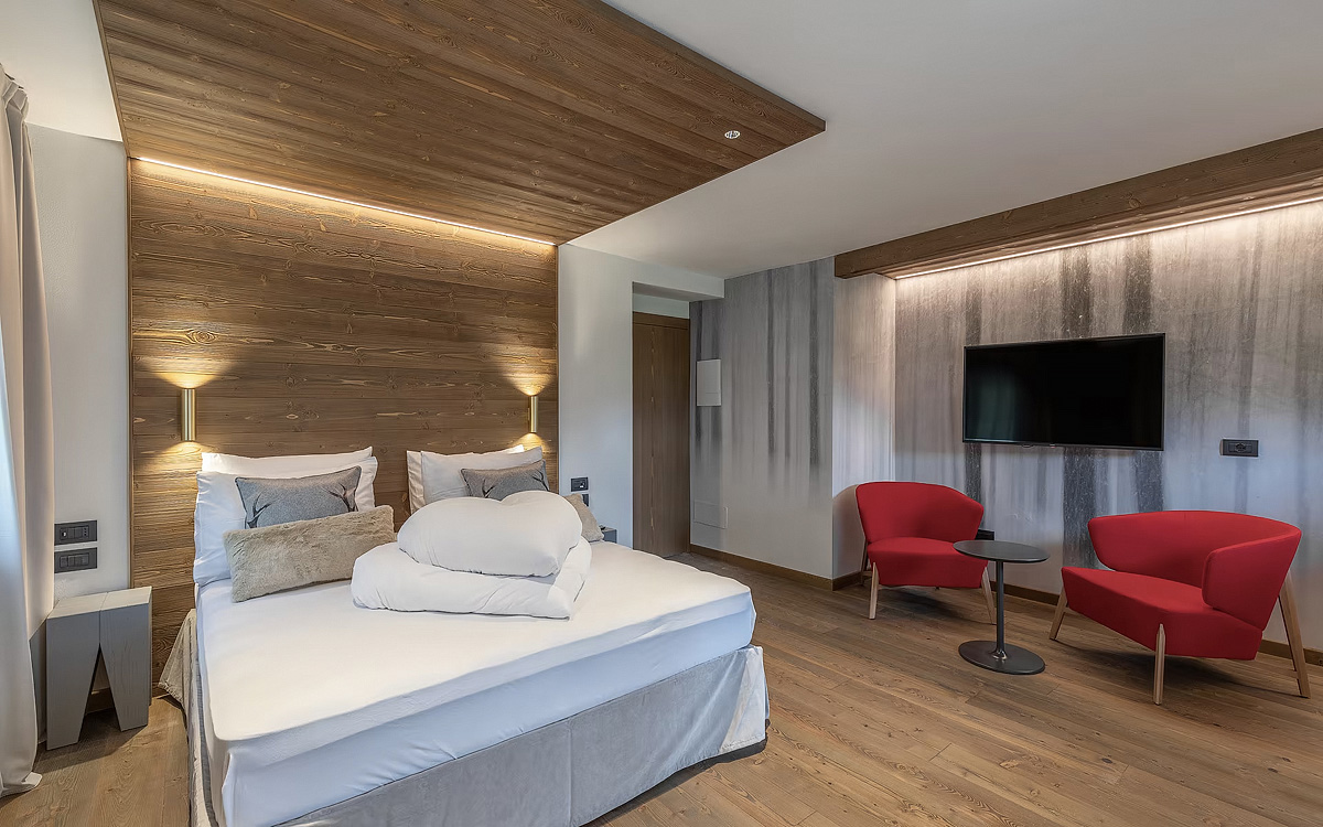 Superior 2/2+2 - 33 m² - izba s manželskou posteľou a rozkladacím gaučom pre 2 deti do nedovŕšených 16 rokov, sociálne zariadenie, balkón; maximálna obsaditeľnosť izby sú 2 dospelé osoby a 2 deti od 3 do nedovŕšených 16 rokov