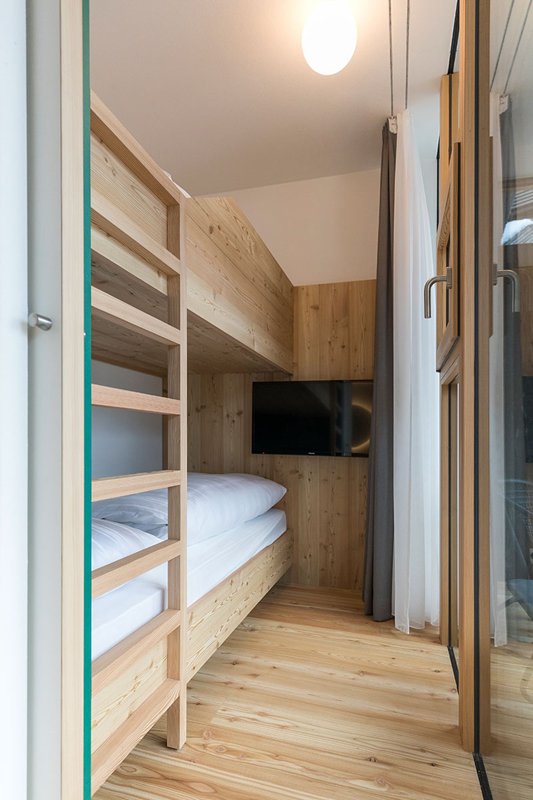 81 m² - 1 spálňa s 1 samostatným lôžkom (dĺžka 170 cm) a poschodovou posteľou, obývacia izba s kuchynským kútom a čiastočne oddelenou manželskou posteľou, fínska sauna, 2 sociálne zariadenia, balkón; maximálna obsaditeľnosť apartmánu sú 2 dospelé osoby a 3 deti do nedovŕšených 18 rokov