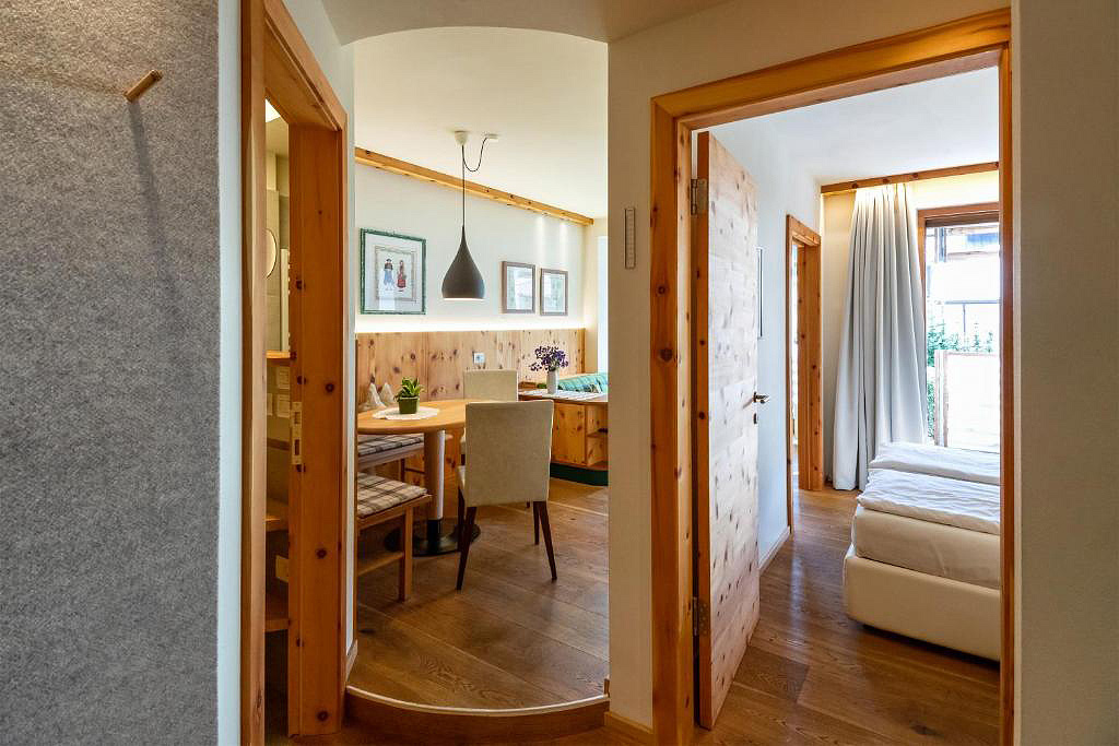 45 m² – 1 spálňa s manželskou posteľou alebo 2 samostatnými lôžkami, obývacia izba s kuchynským kútom a rozkladacím gaučom pre 2 osoby alebo vyklápacou manžeslkou posteľou (veľkosť 1,5 bežného lôžka), sociálne zariadenie, balkón; maximálna obsaditeľnosť apartmánu sú 2 dospelé osoby a 2 deti do nedovŕšených 14 rokov