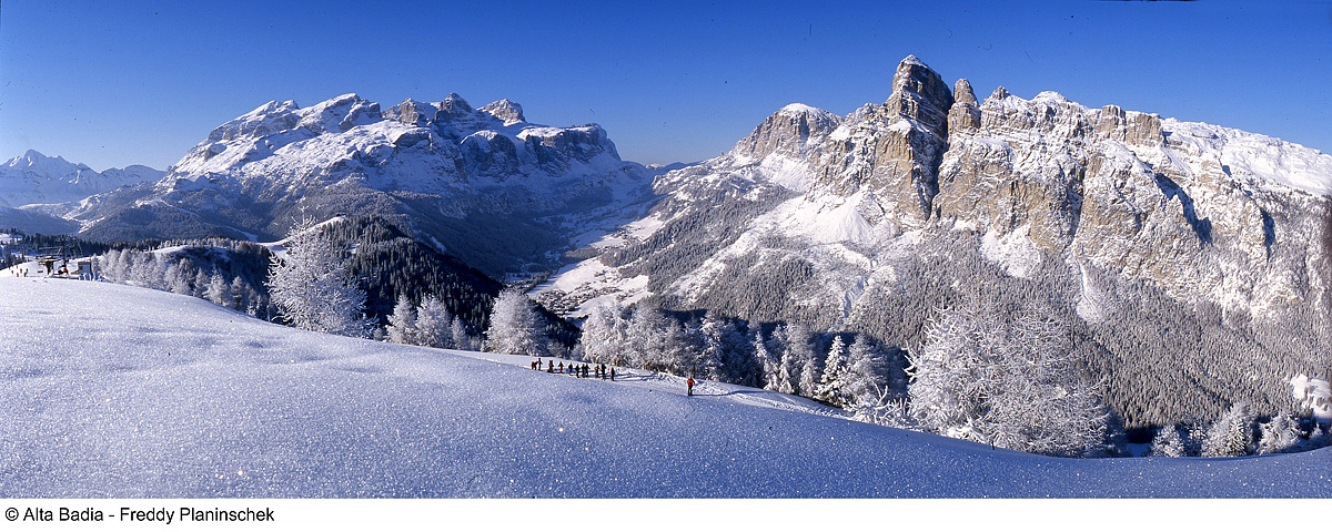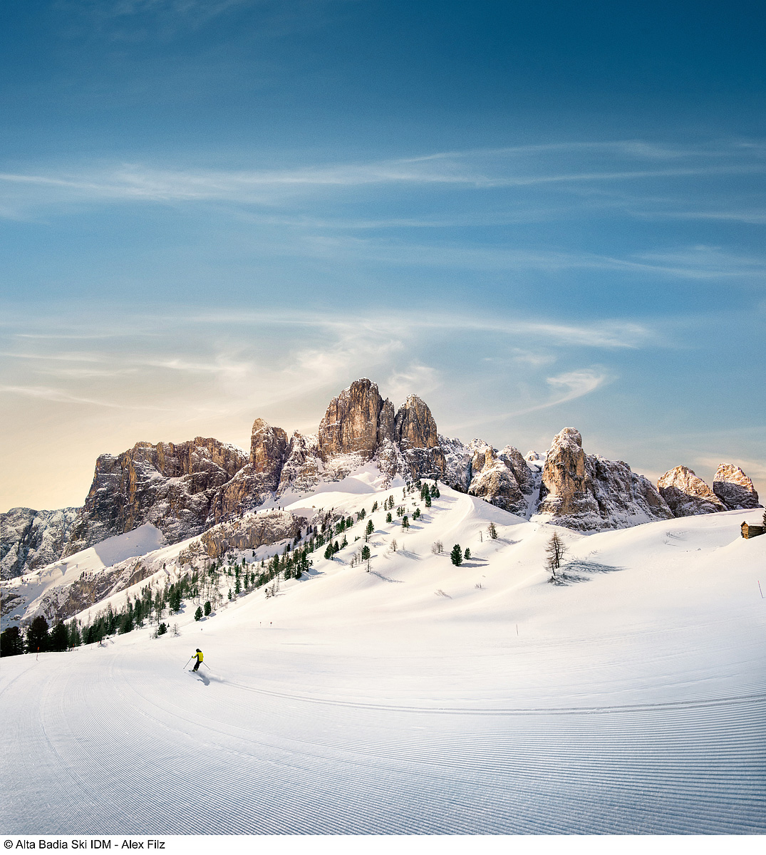 Tieto napojenia Alta Badie cez Sella Rondu i na okolité strediská Arabba / Marmolada, Val Gardena / Alpe di Siusi a Val di Fassa a len malá vzdialenosť od obdobne prestížnych stredisiek Cortina d’Ampezzo a Kronplatz tu činí takmer „povinným“ celoplošný skipas Dolomiti Superski, ktorý tak predkladá lyžiarske možnosti toho najvyšieho rozmeru.