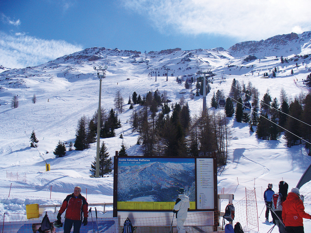 Santa Caterina Valfurva, zaujímavá dedinka v srdci Národného parku Stelvio, bola spoluusporiadateľom už zmienených MS v alpských disciplínach a nedávno na niekoľko rokov zaskočila za Bormio v roli usporiadateľa zjazdu a Super-G Svetového pohára mužov. Ponúka síce rozsahom menší, v mnohých smeroch však úplne jedinečný skiareál. Náročné severné svahy a zadné, slnečnými lúčmi stále zaliate údolie – to je súčasná realita Santa Cateriny.