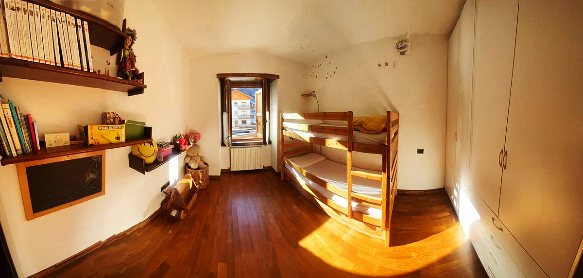 1 spálňa s manželskou posteľou a malou čiastočne oddelenou miestnosťou na odkladanie batožiny, 1 spálňa s 2 samostatnými lôžkami, 1 spálňa s poschodovou posteľou, priestranná obývacia izba s s čiastočne oddelenou kuchyňou, sociálne zariadenie