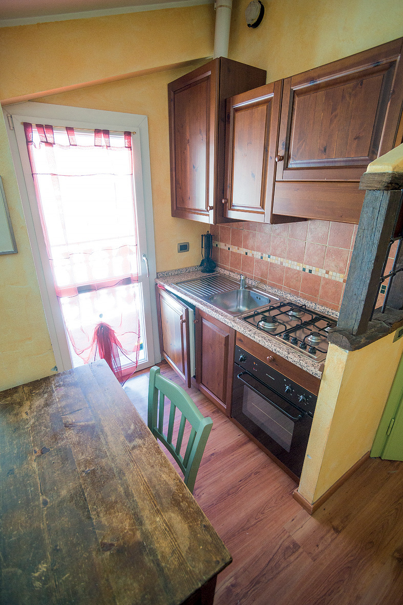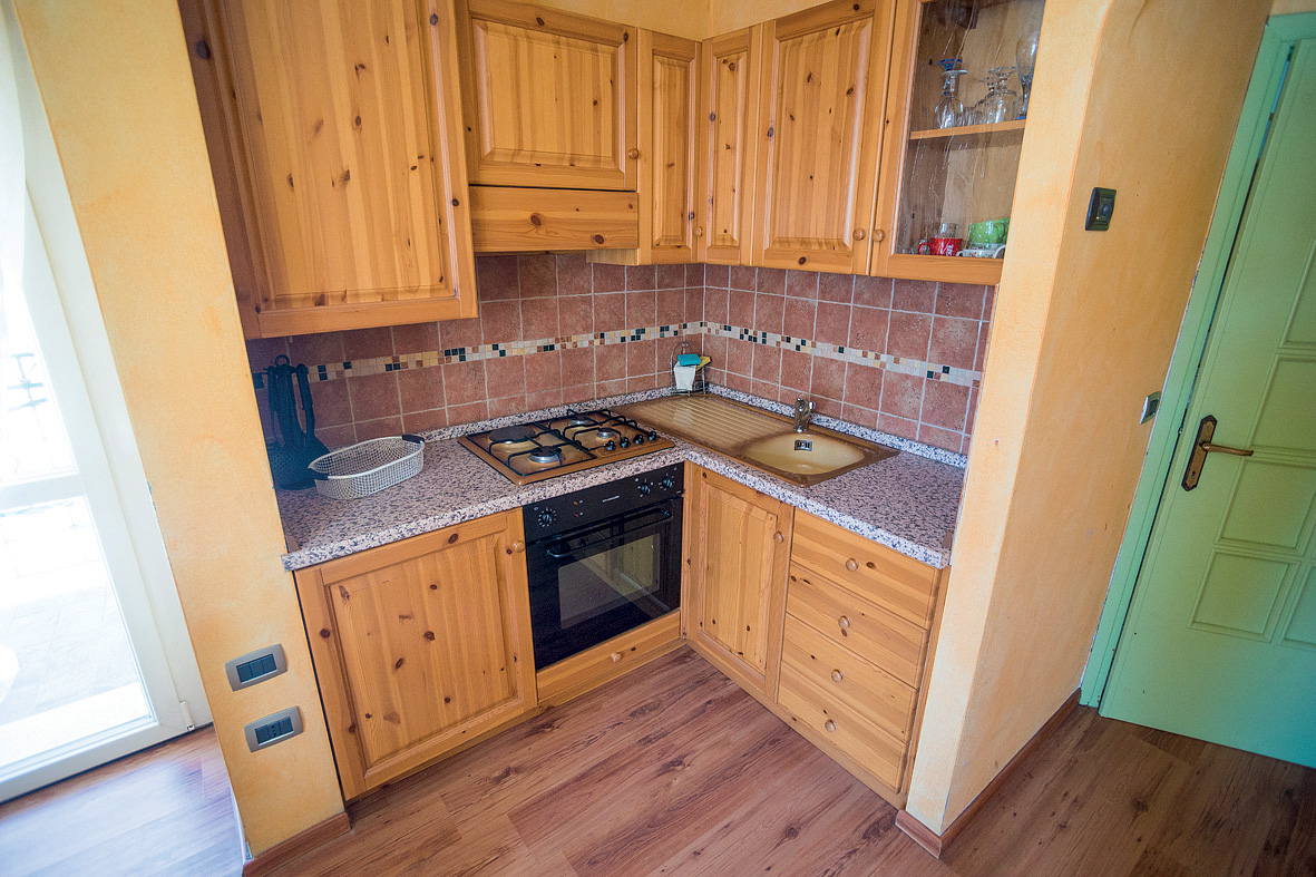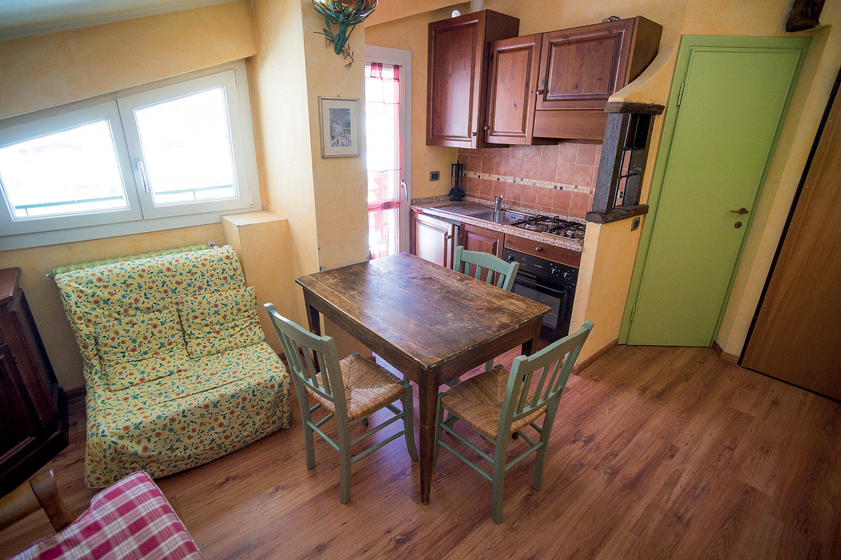 1 malá spálňa s manželskou posteľou a poschodovou posteľou, veľmi malá obývacia izba s kuchynským kútom a rozkladacím gaučom pre 2 osoby, sociálne zariadenie, spravidla balkón; vzhľadom k veľkosti apartmánu odporúčame pre maximálne 2 dospelé osoby a 2 deti