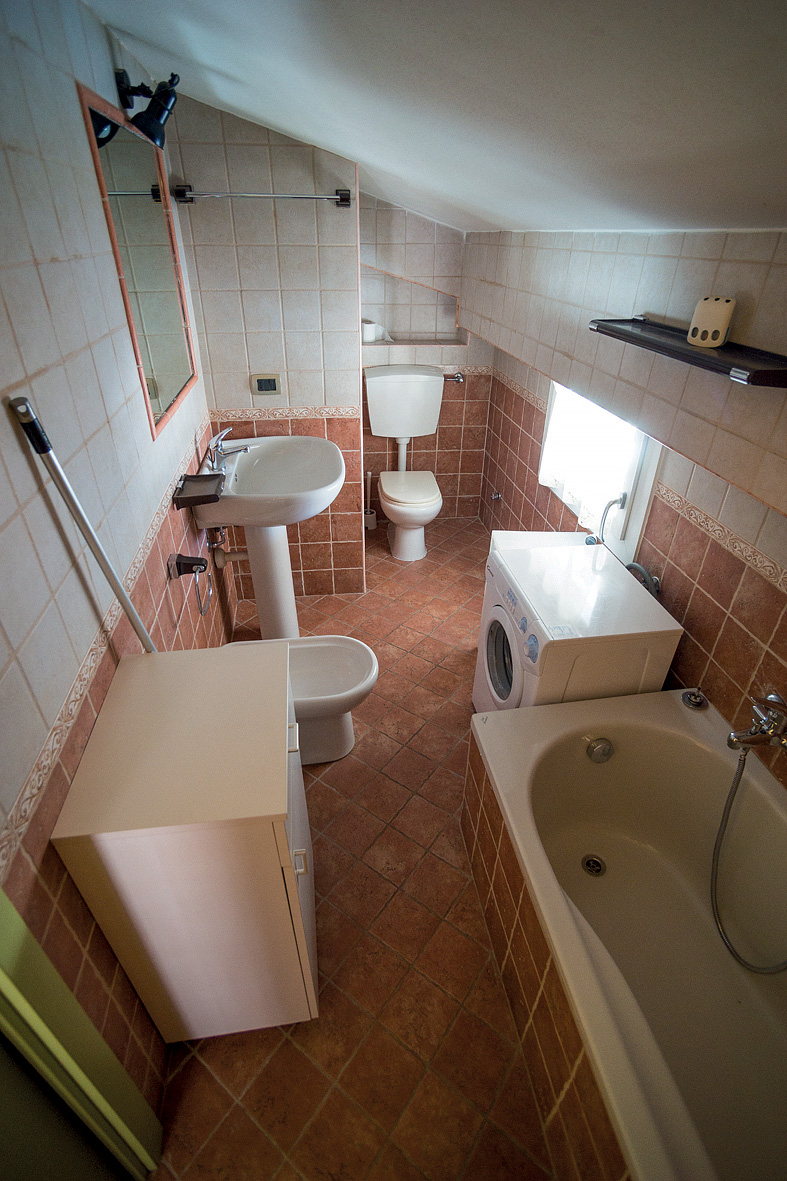 1 spálňa s manželskou posteľou, 1 veľmi malá spálňa s poschodovou posteľou, obývacia izba s kuchynským kútom a rozkladacím gaučom pre 1 osobu, sociálne zariadenie s vaňou, balkón; apartmán je situovaný v podkroví