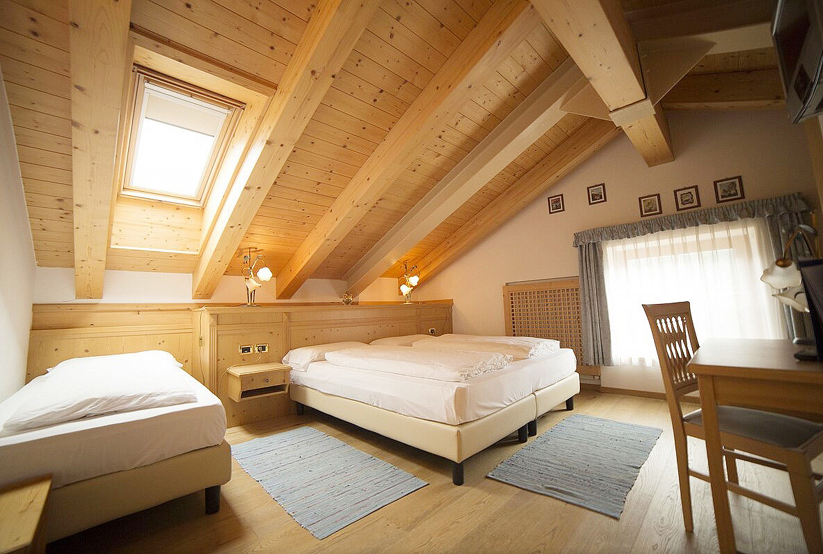 26 m² - izba s manželskou posteľou a 2 samostatnými lôžkami, sociálne zariadenie; izba sa nachádza v podkroví