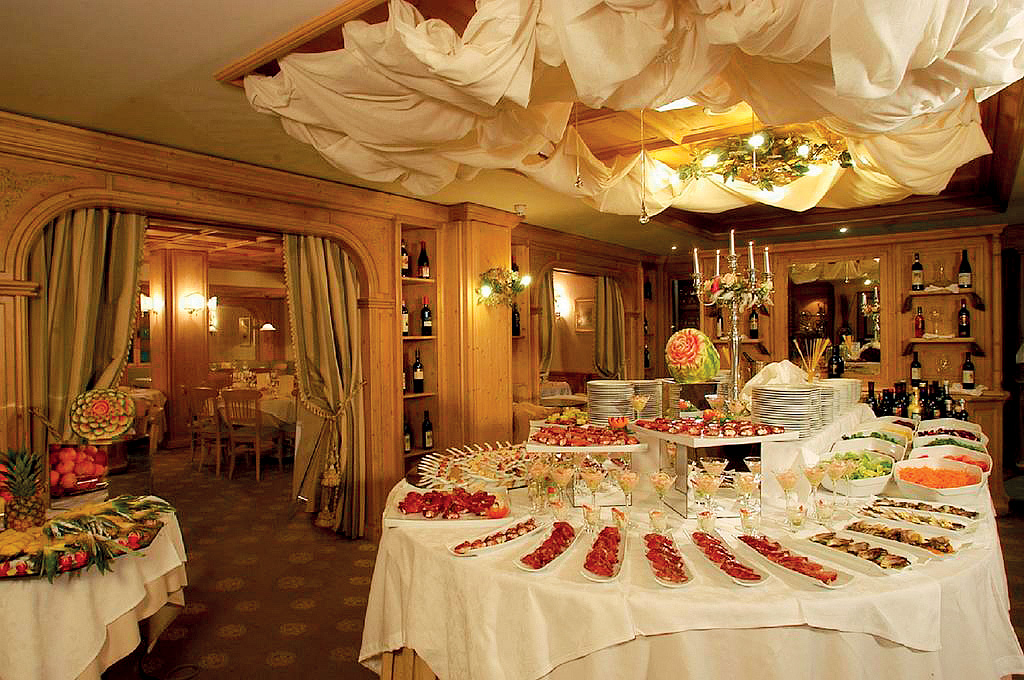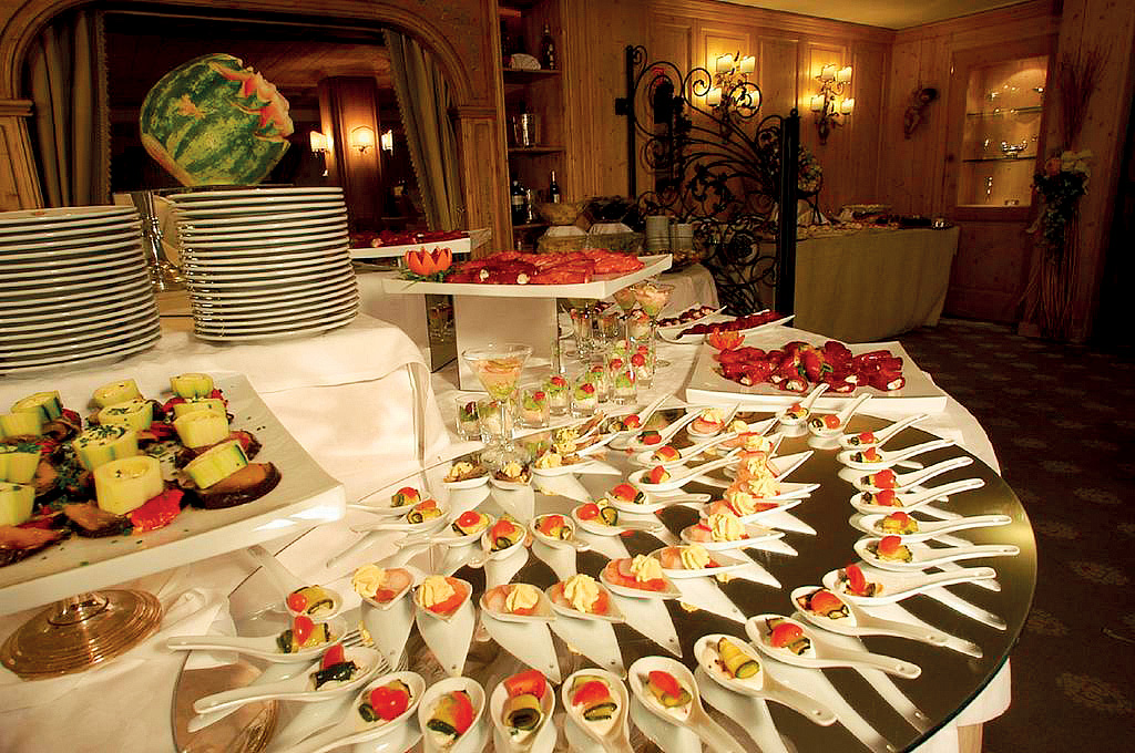 servírované menu s výberom zo 4 až 5 teplých predjedál a 4 až 8 hlavných jedál aj s možnosťou výberu à la carte, studené predjedlá, prílohy, zelenina, šaláty, dezerty, ovocie a syry formou bohatého bufetu, nápoje za poplatok; 1x týždenne slávnostná večera s jednotným menu; pri večeri je vítaný spoločenský odev