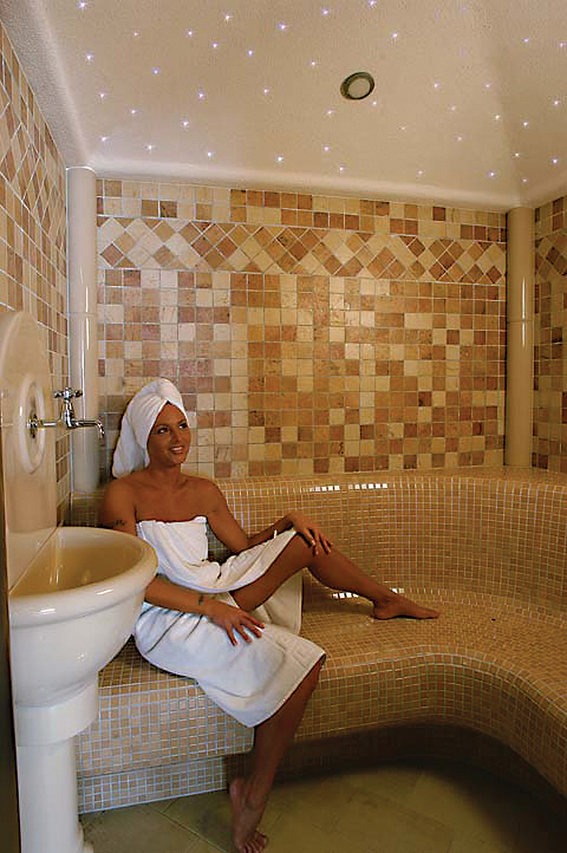 vírivka# až pre 5 osôb, sauna#, para#, 2x multifunkčná sprcha#, relaxačný kútik# s lehátkami; služby označené # môžu využívať len osoby od 14 rokov