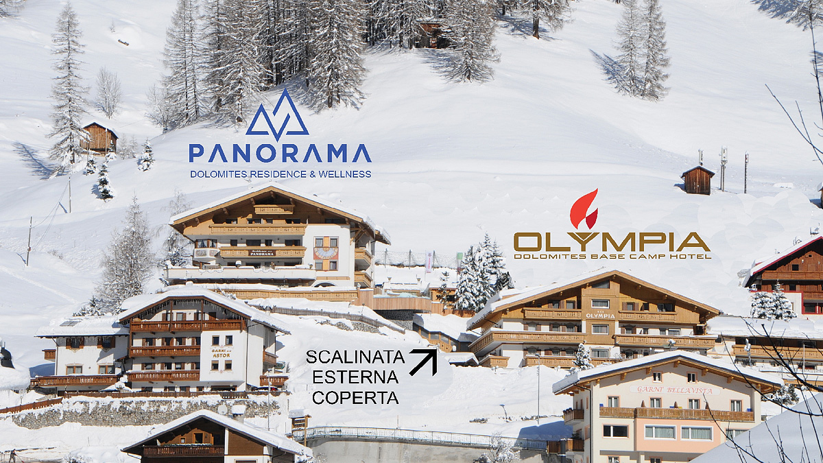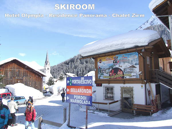 Arabba, centrum - 500 m, skiareál Arabba / Marmolada - Sella Ronda - 650 m; Hotel Olympia – 30 m