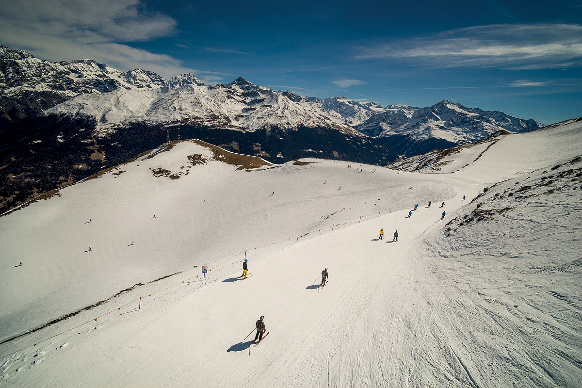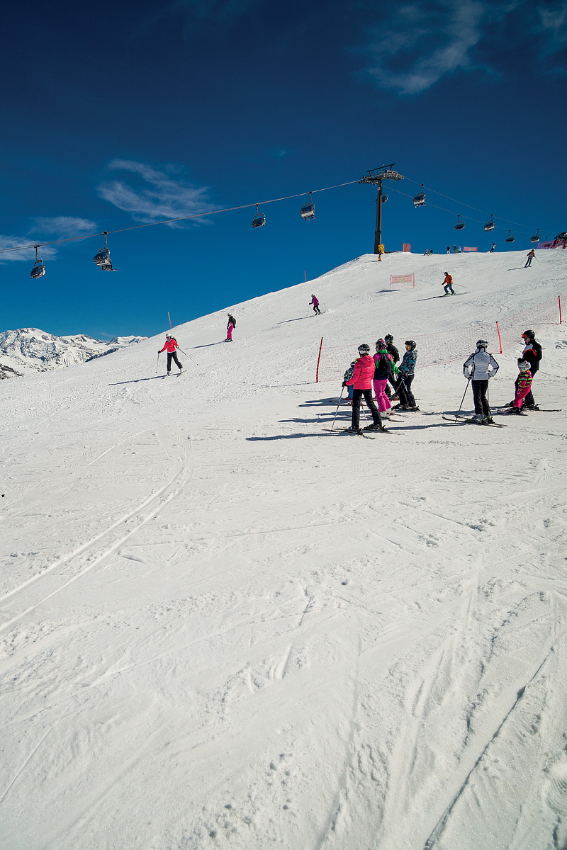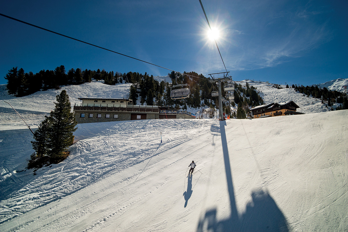 Skiareál San Colombano zďaleka tak exponovaný nie je, a je teda najmä za extrémnych poveternostných podmienok vhodnejšou alternatívou najmä pre rodiny s deťmi.