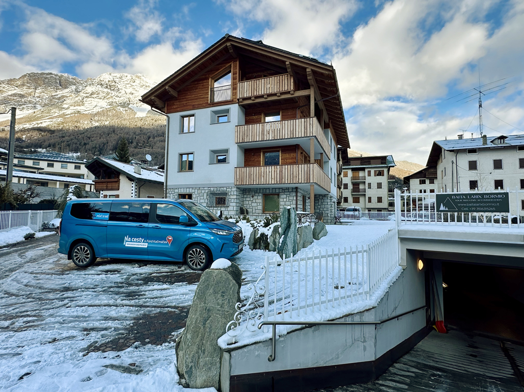 Bormio, centrum - 150 m, skiareál Bormio - 550 m pešo / 700 m autom, skibus - 140 m