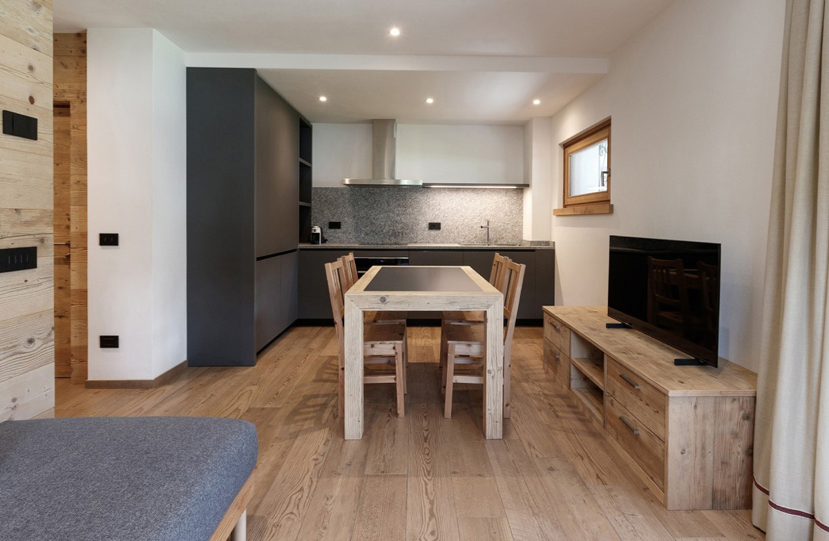 40 m² - 1 spálňa s manželskou posteľou alebo 2 samostatnými lôžkami, obývacia izba s kuchynským kútom a rozkladacím gaučom pre 1 osobu, sociálne zariadenie so sprchou, terasa; apartmán na prízemí