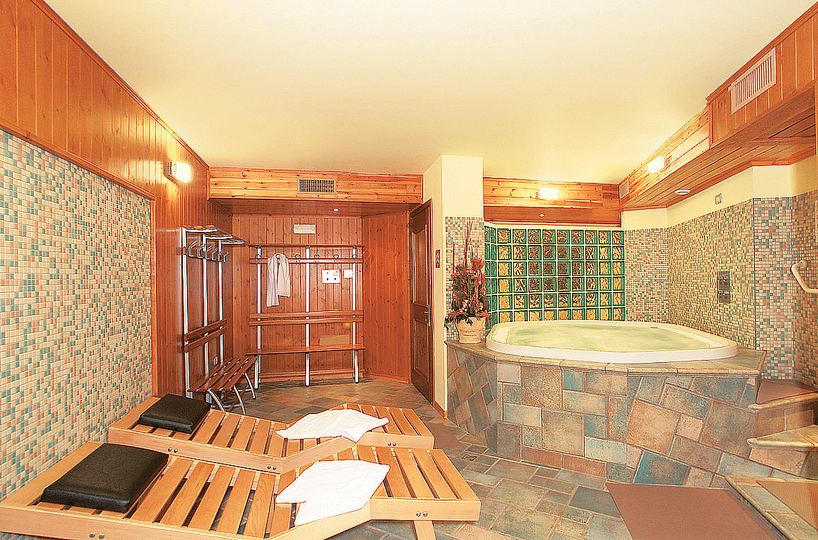vírivka# až pre 4 osoby, sauna#, para#, multifunkčná sprcha#, relaxačný kútik# s lehátkami, posilňovňa#; služby označené # môžu využívať len osoby od 14 rokov