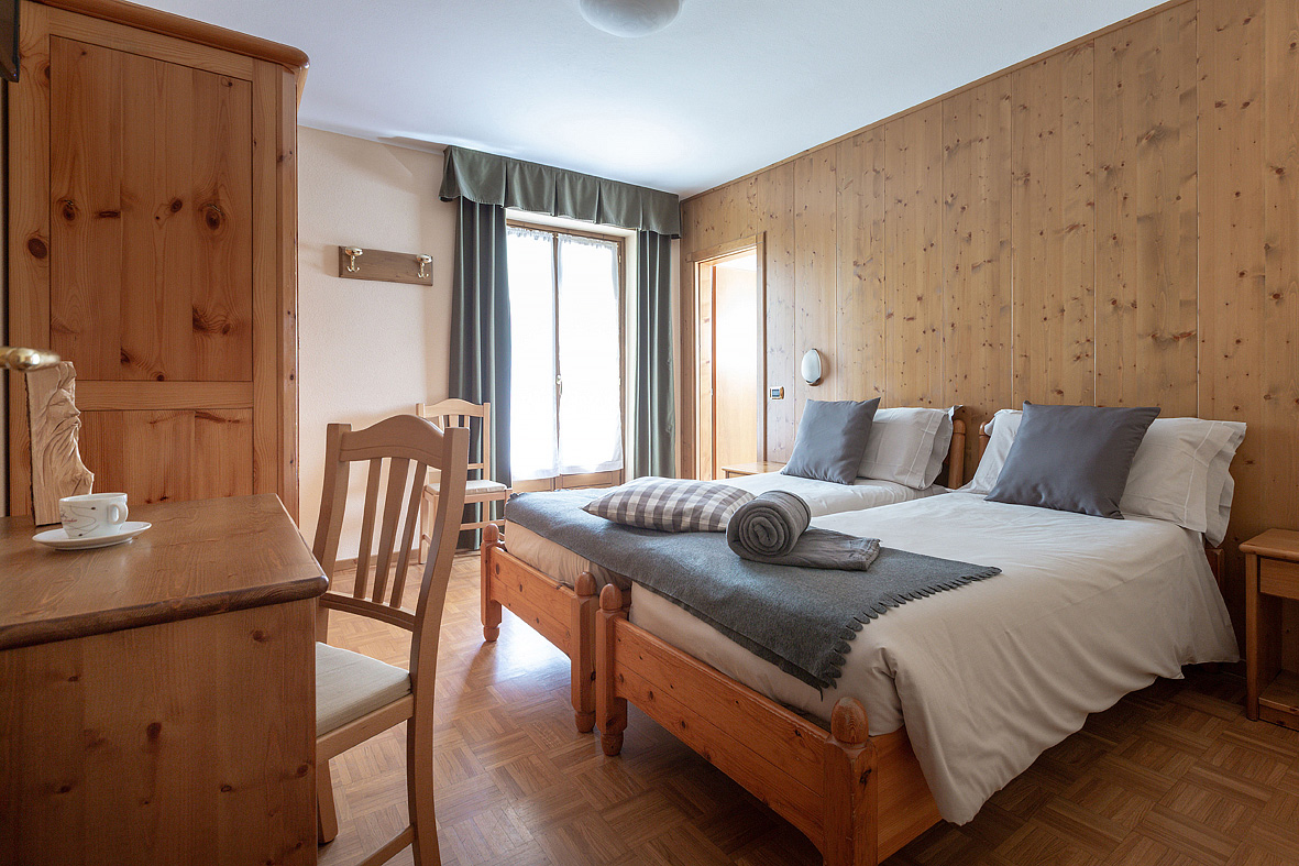 izba s manželskou posteľou, menšia izba s poschodovou posteľou, sociálne zariadenie spravidla so sprchou, spravidla balkón; maximálna obsadenosť izby sú 4 dospelé osoby