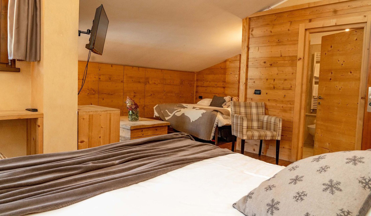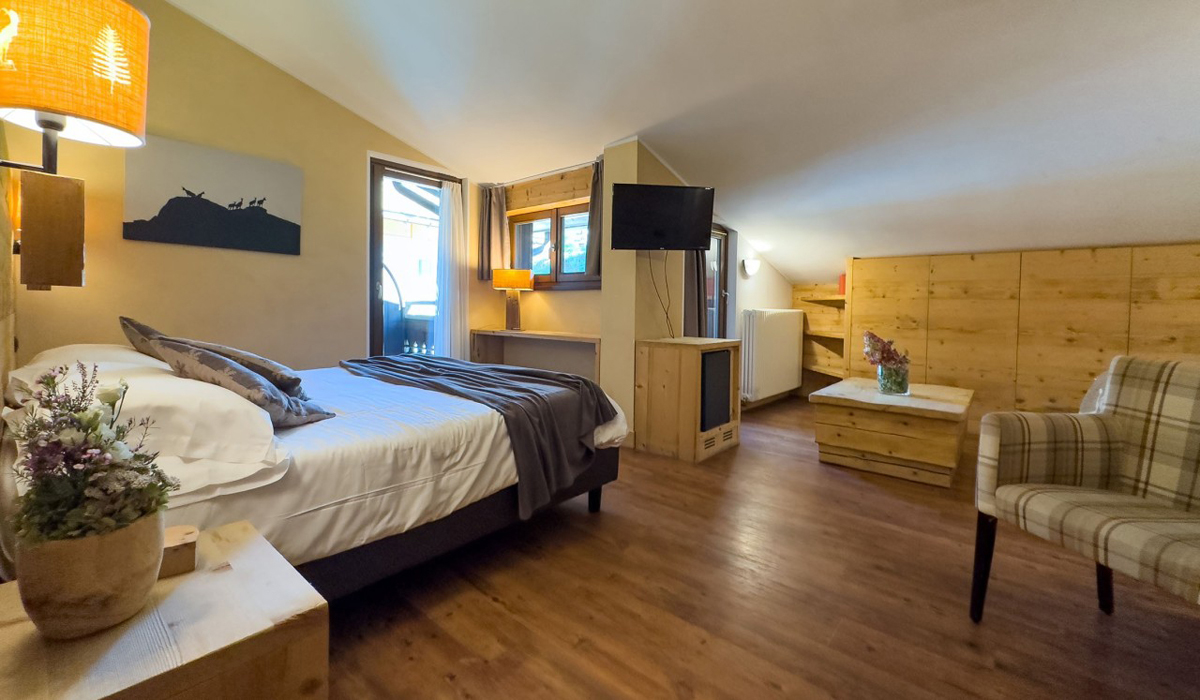 Panorama 2/3 - 35 m² - zrekonštruovaná priestrannejšia izba s manželskou posteľou či 2 samostatnými lôžkami a prípadne 1 samostatným lôžkom, sociálne zariadenie spravidla so sprchou, spravidla balkón
