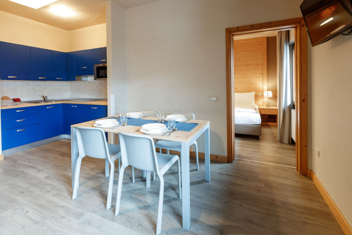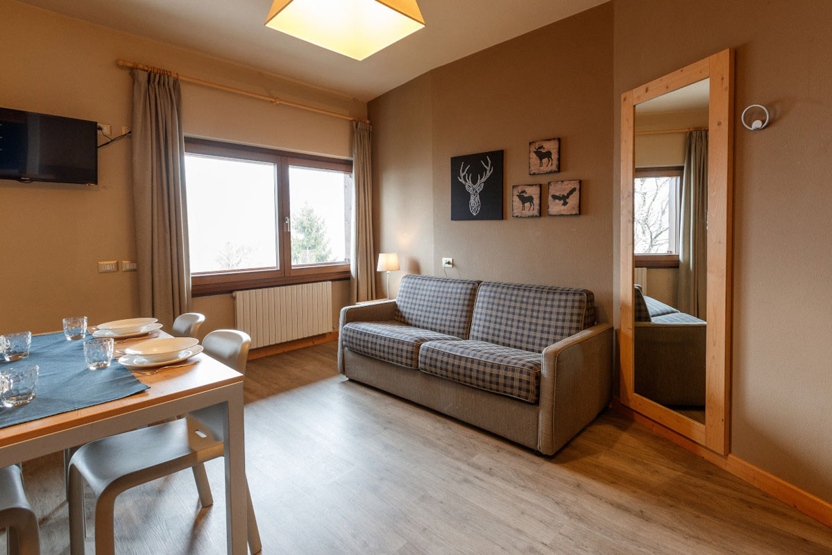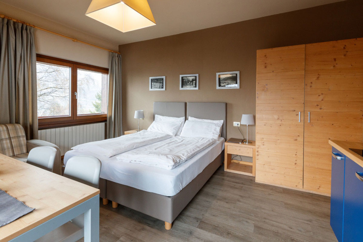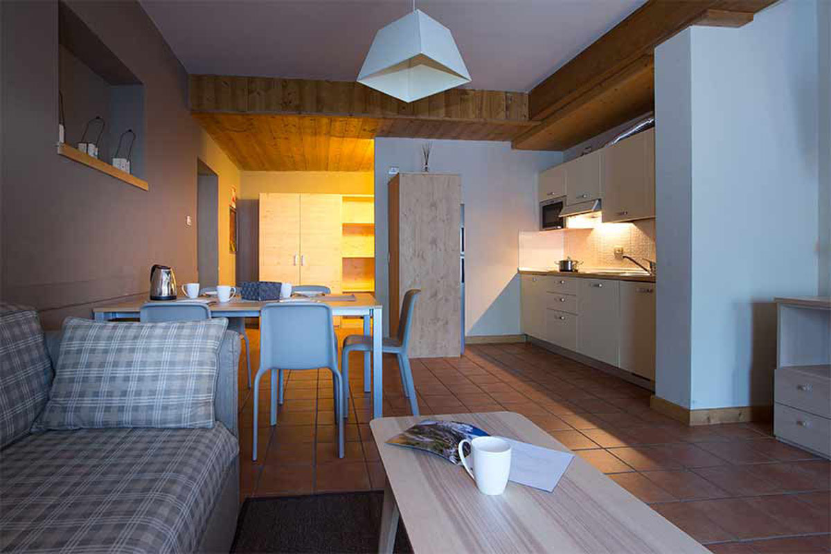 40 až 45 m² - 1 spálňa s manželskou posteľou a prípadne 1 samostatným lôžkom alebo poschodovou posteľou, obývacia izba s kuchynským kútom a rozkladacím gaučom pre 2 osoby (možný aj typ "zásuvka"), sociálne zariadenie so sprchou