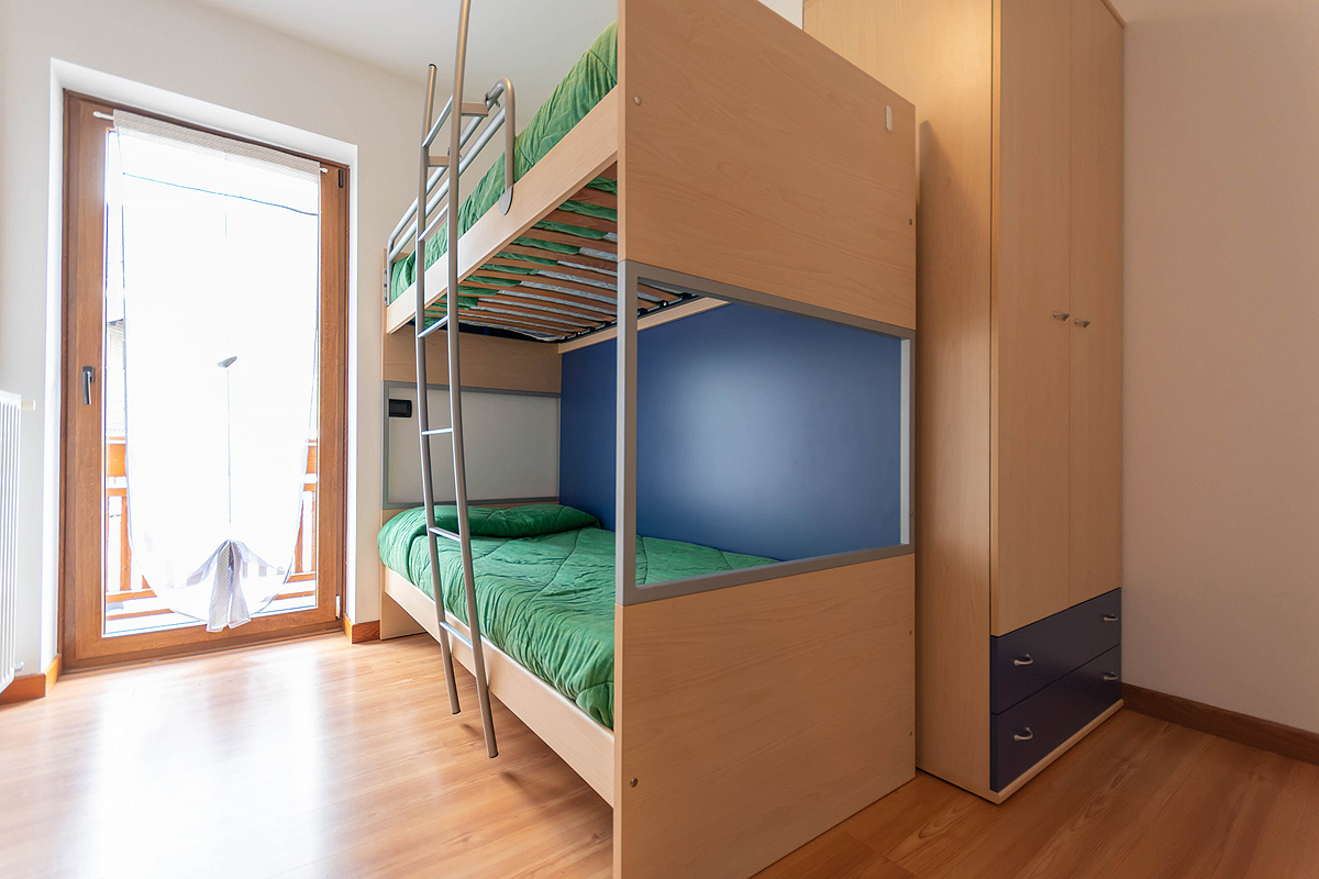 80 m² - 1. podlažie apartmánu - 1 spálňa s poschodovou posteľou, obývacia izba s rozkladacím gaučom pre 2 osoby, samostatná kuchynka, sociálne zariadenie, balkón; 2. podlažie apartmánu - 1 spálňa s manželskou posteľou, sociálne zariadenie, balkón