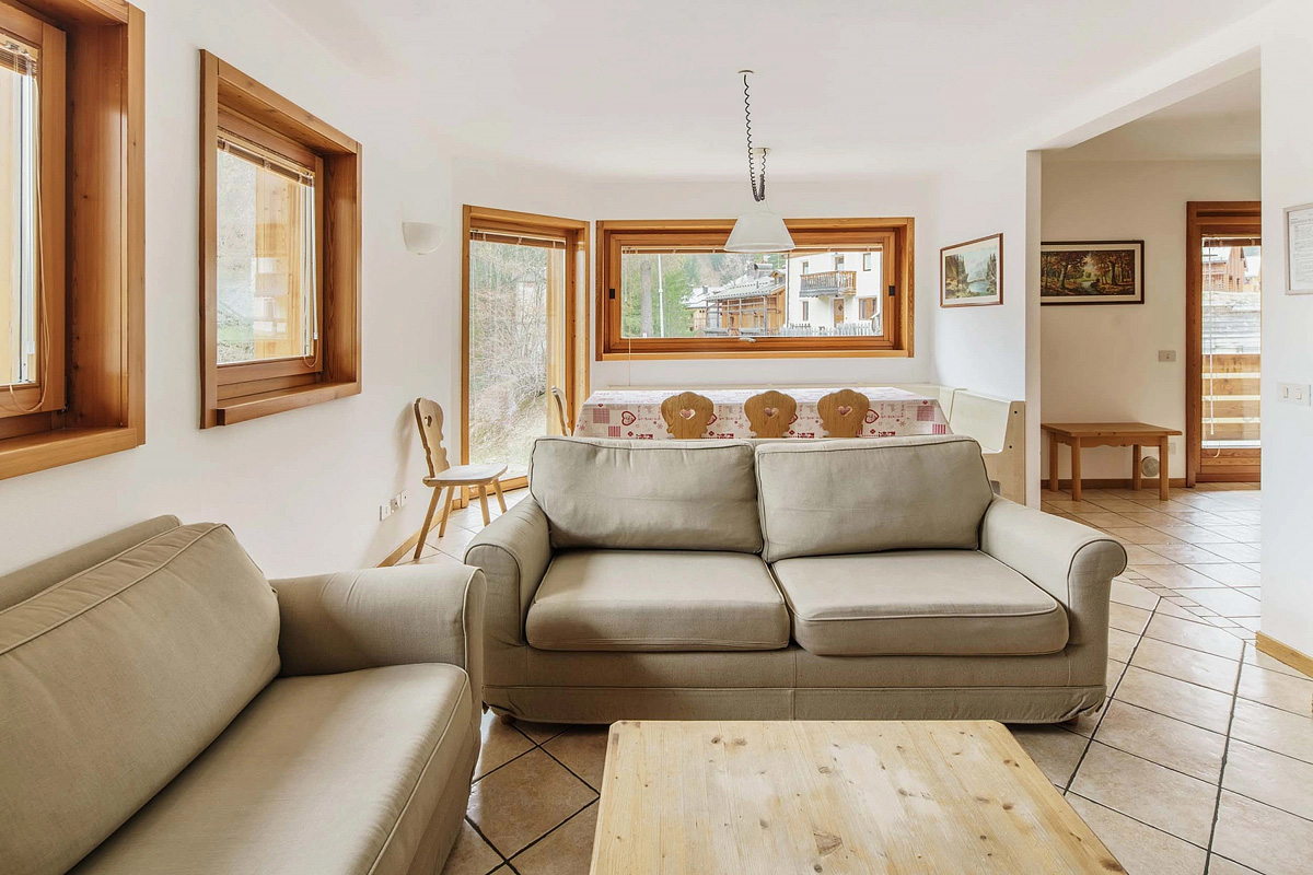 Val di Zoldo - lokalita Pecol, centrum - 100 m, skiareál Civetta - 350 m