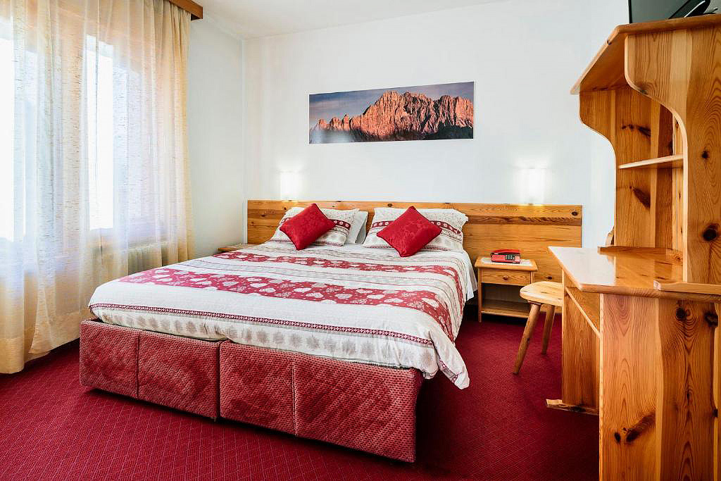 izba s manželskou posteľou a prípadne 1 ďalším samostatným lôžkom či prístelkou, sociálne zariadenie, balkón s výhľadom na hory