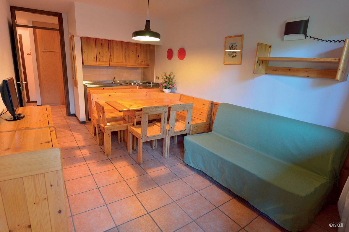30 m² - obývacia izba s kuchynským kútom, poschodovou posteľou a rozkladacím gaučom pre 2 osoby alebo 2 samostatnými vyklápacími posteľami, sociálne zariadenie, balkón; maximálna obsaditeľnosť apartmánu sú 2 dospelé osoby a 2 deti do nedovŕšených 15 rokov