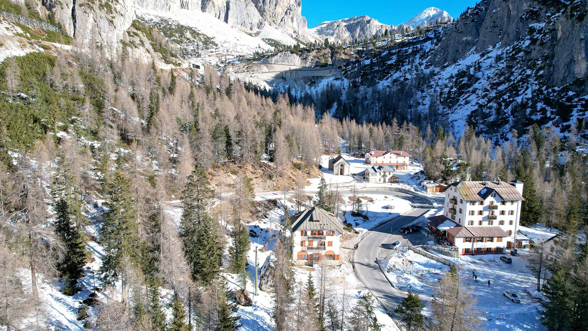 pokojná poloha takmer v srdci Dolomitov neďaleko horského priesmyku Passo Falzarego s krásnymi výhľadmi v nadmorskej výške 1 900 m n. m.