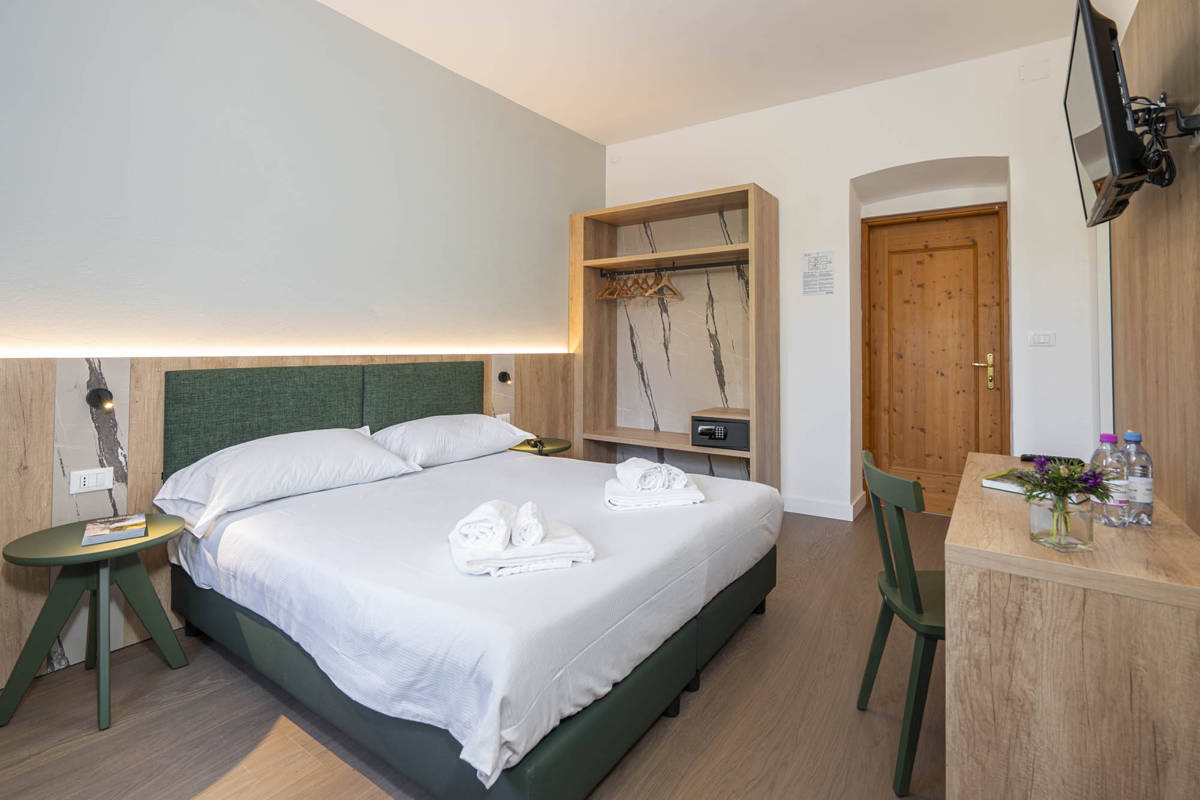 15 až 19 m² – izba s 2 samostatnými lôžkami alebo manželskou posteľou a prípadne 1 ďalším samostatným lôžkom, sociálne zariadenie, zriedkavo balkón; izby sú situované v hlavnej budove