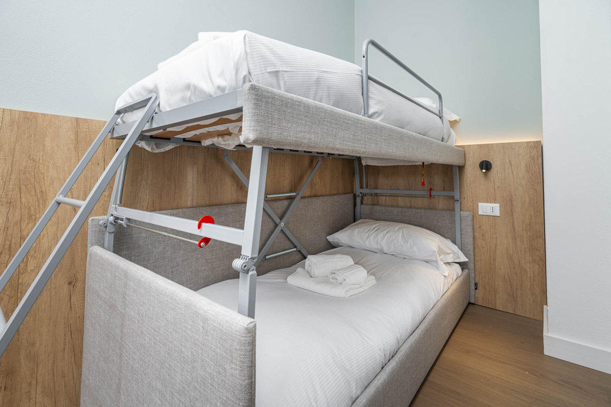 18 m² – izba s 2 samostatnými lôžkami alebo manželskou posteľou a poschodovou posteľou, sociálne zariadenie; izby sú situované v depandancii vzdialenej 30 m