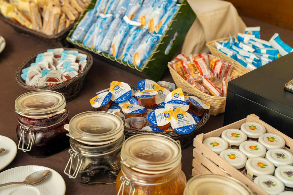 servírované menu s výberom z 3 studených alebo teplých predjedál a 3 hlavných jedál s prílohou, šalátový bufet, dezert alebo ovocie, nápoje za poplatok