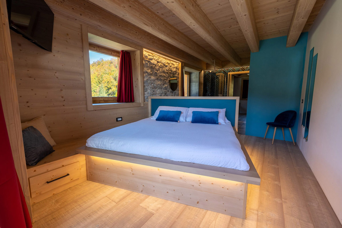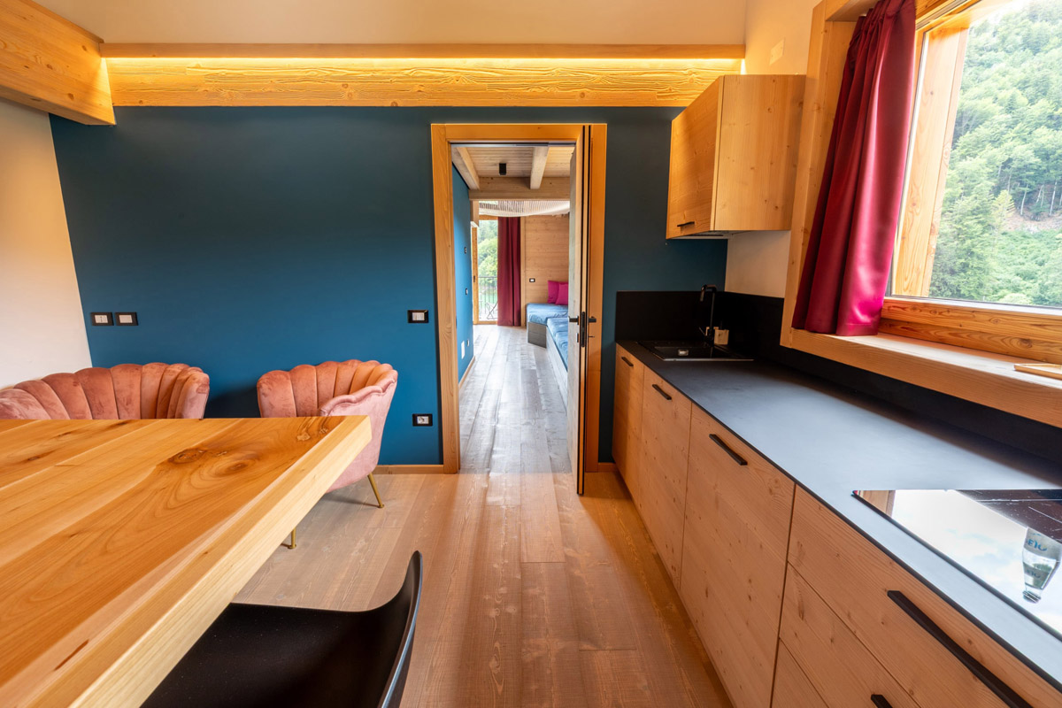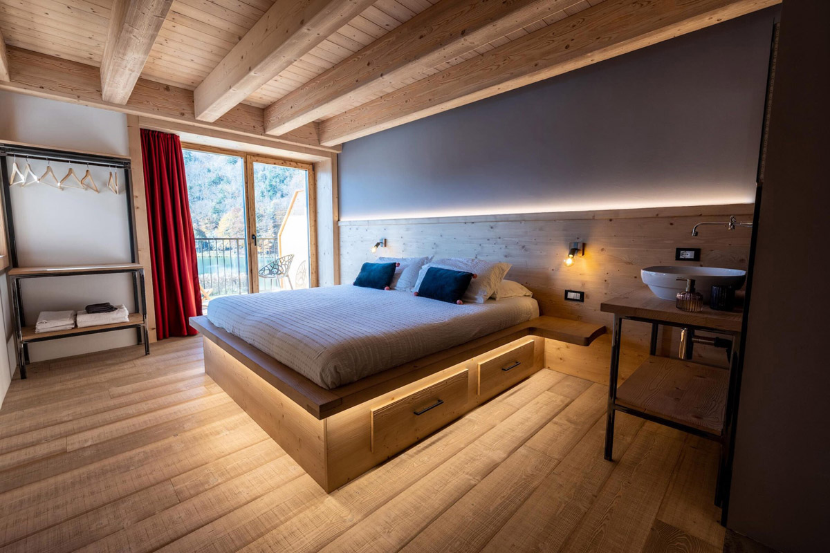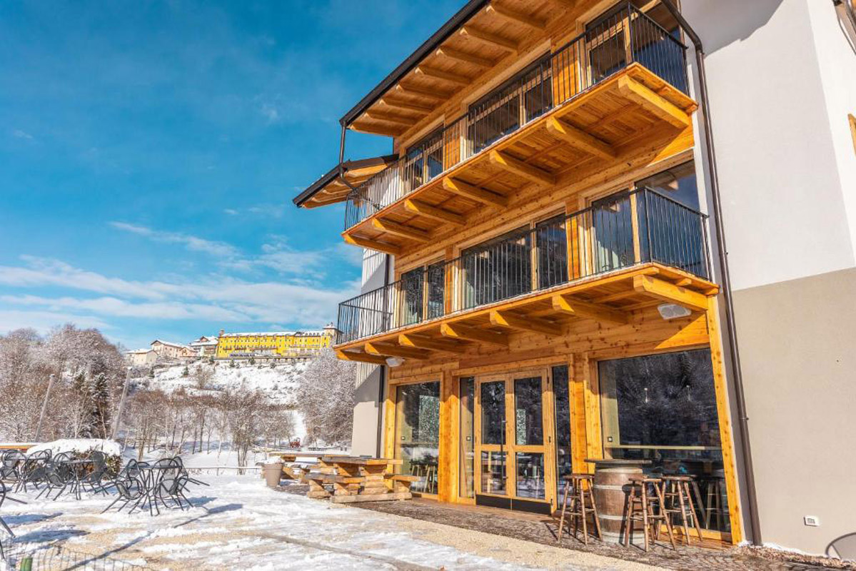 krasne architektonicky riešený malý aparthotel s romantickou polohou na brehu jazera Lavarone