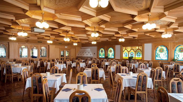 večera - servírované menu s výberom z 3 teplých predjedál, 3 hlavných jedál s prílohou a 3 až 8 dezertov / ovocie, studené predjedlá formou bufetu, bohatý šalátový bufet, nápoje za poplatok; 1x týždenne typická večera
