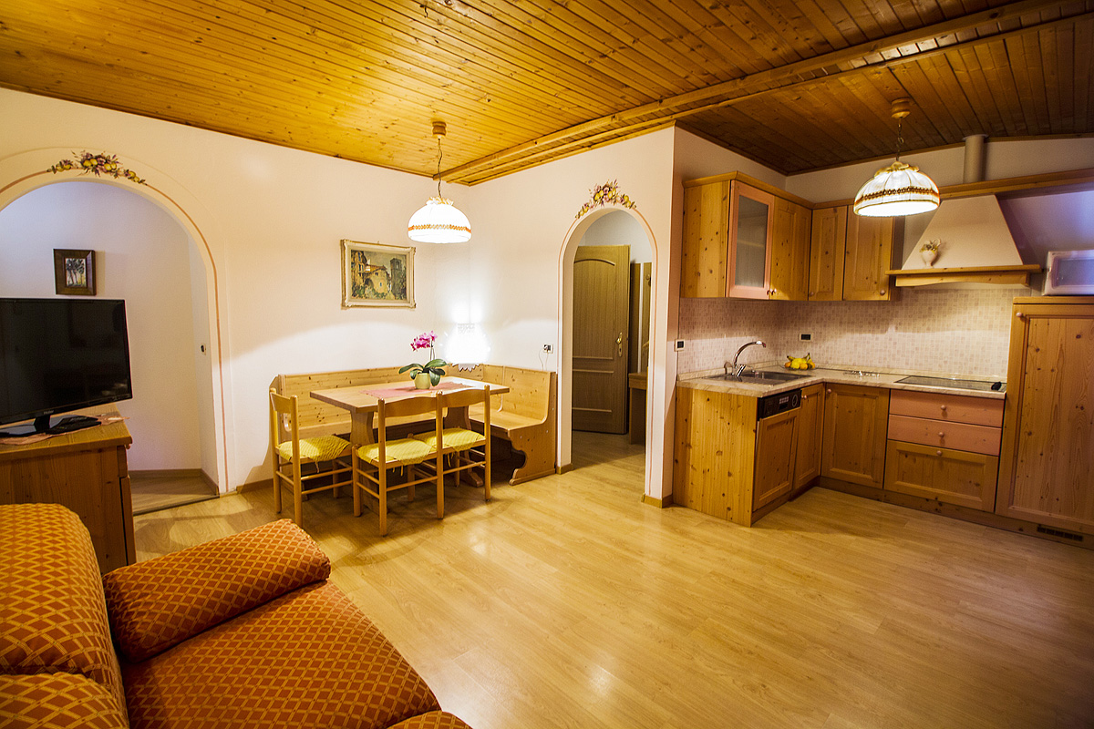 1 spálňa s manželskou posteľou a prípadne 1 samostatným lôžkom pre 1 osobu, obývacia izba s kuchynským kútom a rozkladacím gaučom pre 2 osoby, sociálne zariadenie, z 50% balkón