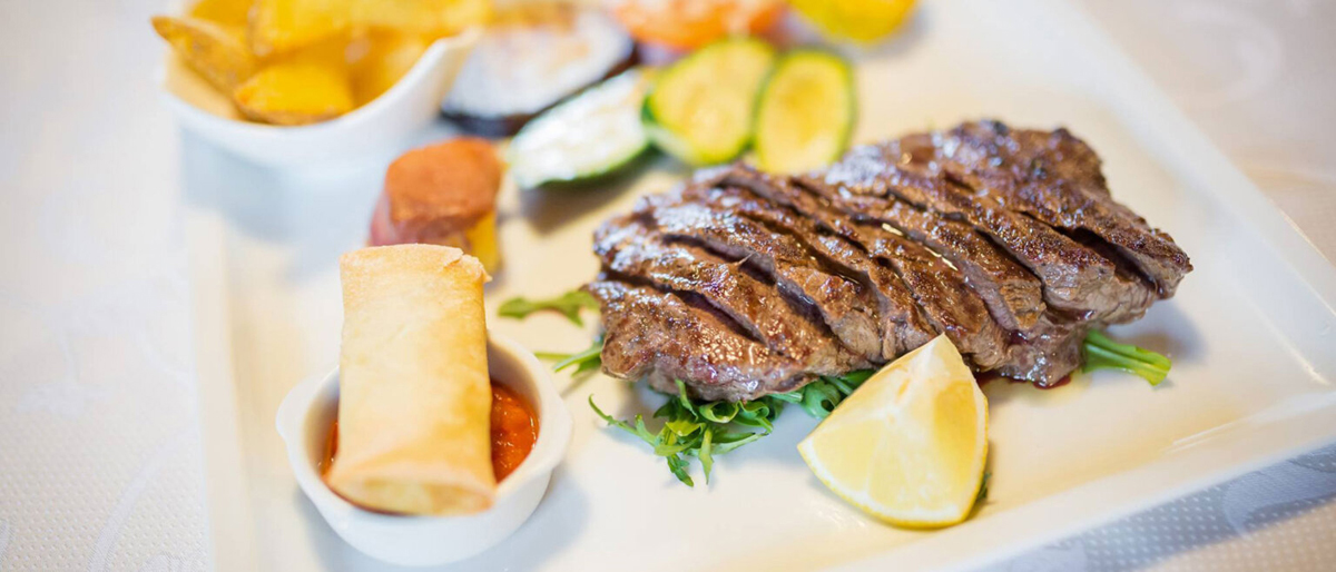 večera - servírované menu s výberom z 2 až 3 studených alebo teplých predjedál a 2 až 3 hlavných jedál s prílohou, šalátový bufet, servírovaný dezert, nápoje za poplatok; 1x týždenne typická večera