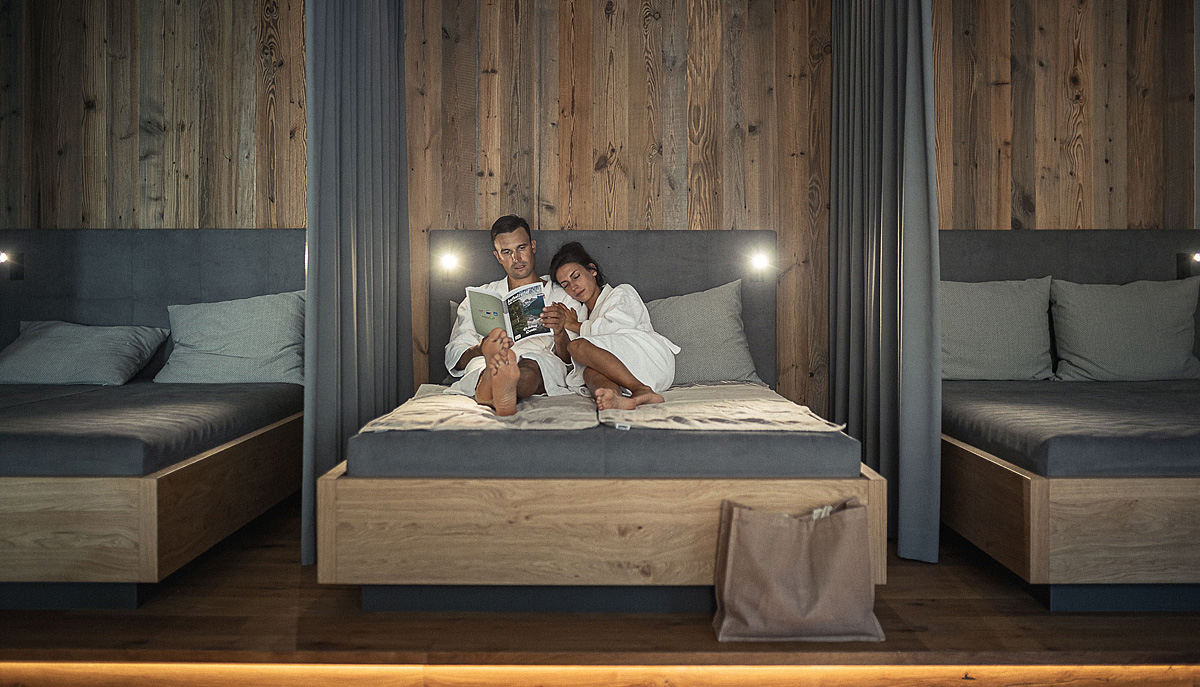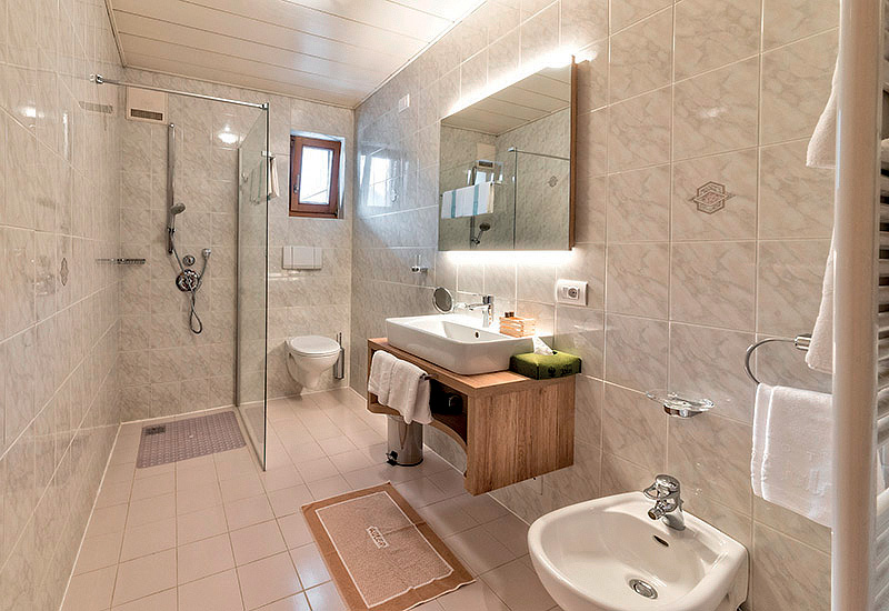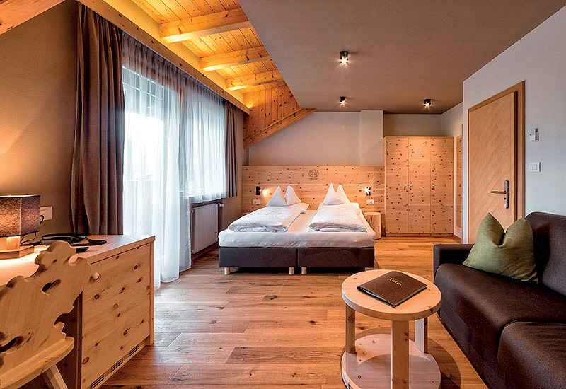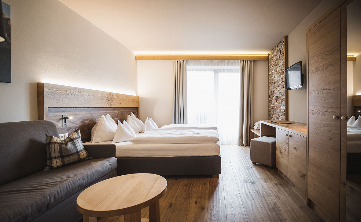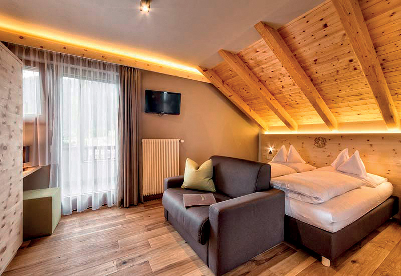 35 m² - izba s manželskou posteľou a prípadne rozkladacím gaučom pre 1 alebo 2 osoby, sociálne zariadenie, balkón s výhľadom na Dolomiti