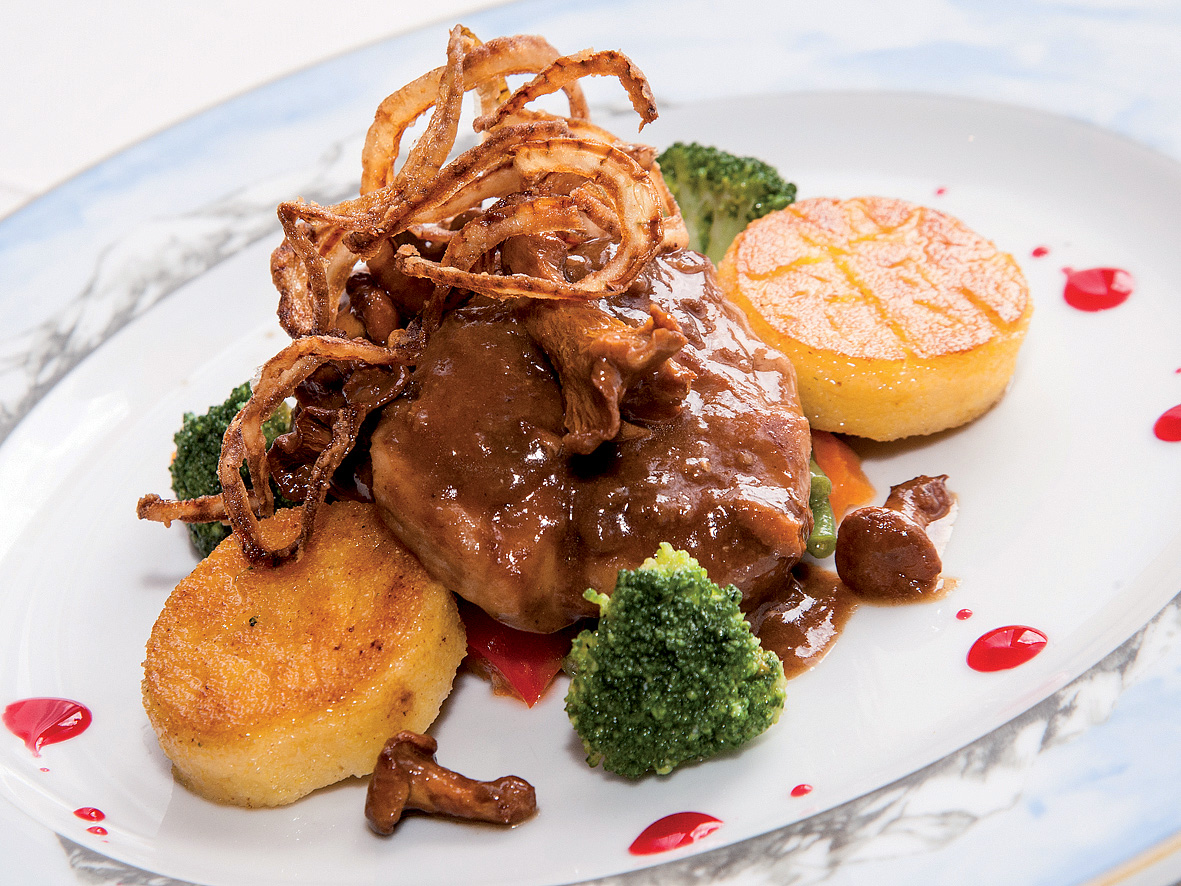 servírované menu s výberom z 2 teplých predjedál a 2 hlavných jedál s prílohou, servírovaný dezert či syry, zmrzlinový kútik, šalátový bufet, nápoje za poplatok