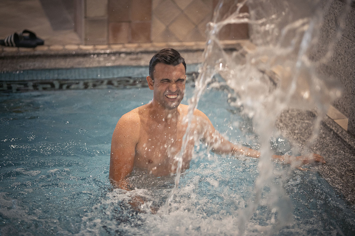 bazén 8 x 5 m s vírivkou až pre 4 osoby, protiprúdom, umelým vodopádom a lehátkami, vonkajší vyhrievaný bazén 8 x 5 m, 2x sauna#, bio sauna#, 2x para#, tepidárium#, infrakabína#, 3x multifunkčná sprcha, horizontálne solárium*, relaxačný kútik s lehátkami, Kneippov chodník, posilňovňa; služby označené # môžu využívať len osoby od 16 rokov