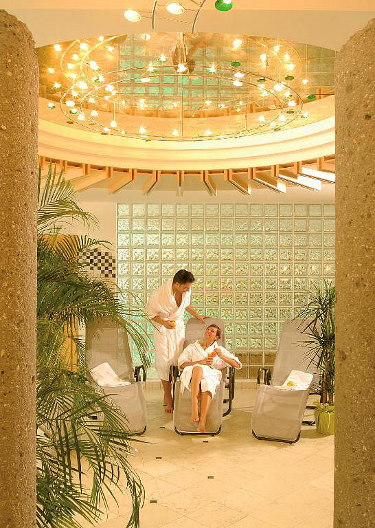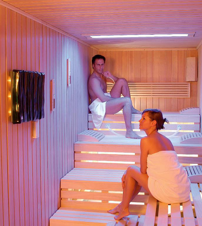 bazén 35 m² s umelým vodopádom a lehátkami, vírivka# až pre 6 osôb, sauna#, bio sauna#, para#, horizontálne solárium*#, infrakabína*#, Kneippov chodník#, relaxačný kútik s lehátkami#, masáže*#, posilňovňa#, biliard, stolný futbal; služby označené # môžu využívať deti až od 16 rokov