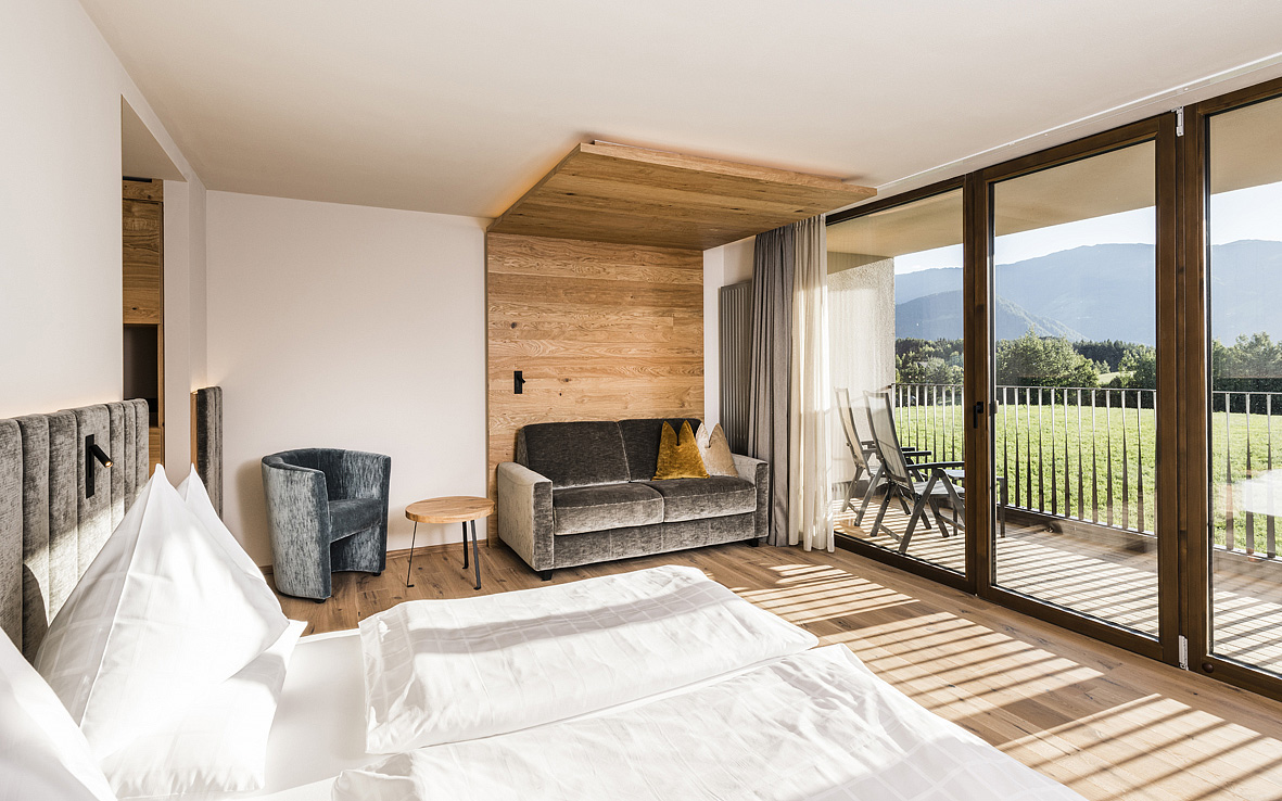 31 až 42 m² - izba s manželskou posteľou či 2 samostatnými lôžkami a prípadne rozkladacím gaučom pre 1 či 2 osoby, sociálne zariadenie, balkón