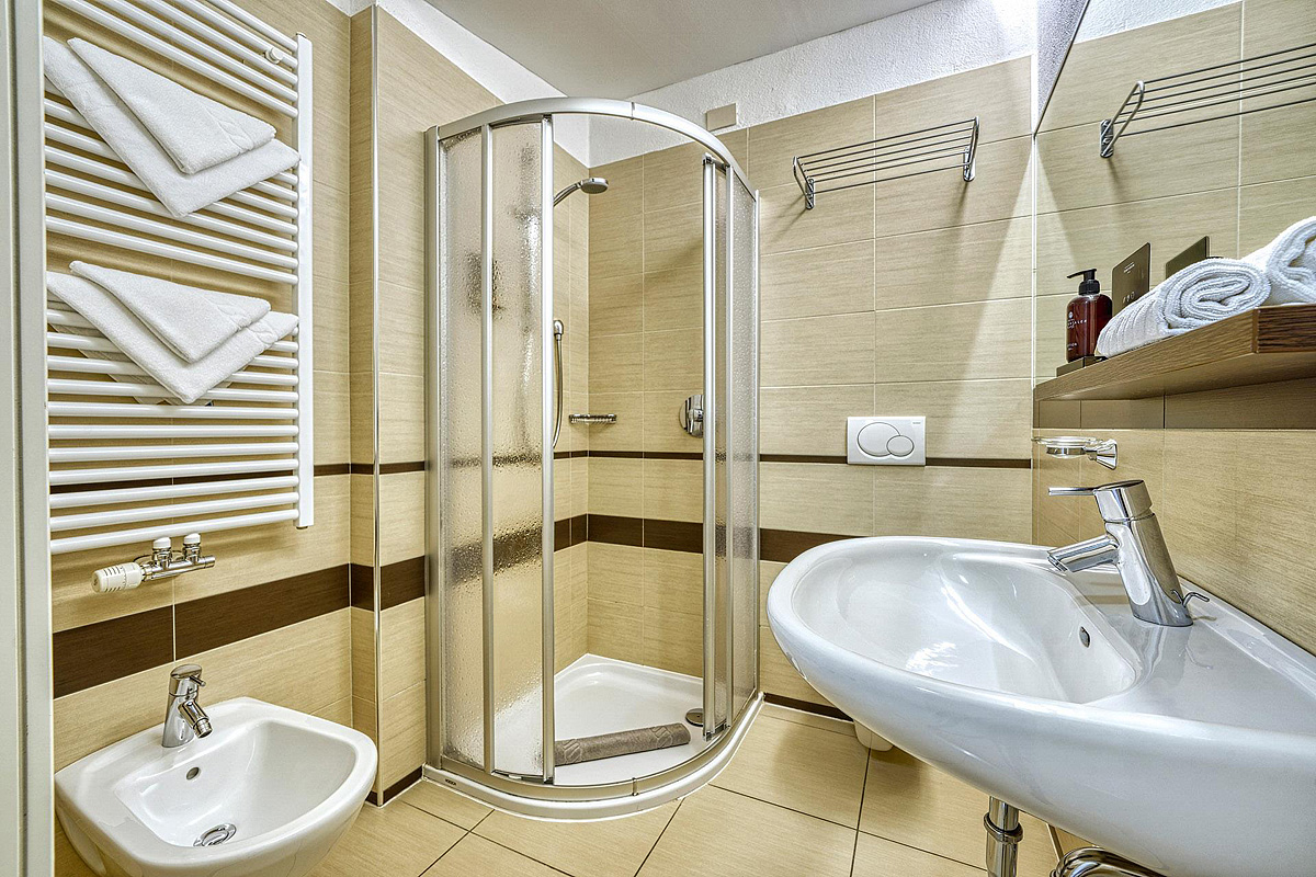 40 m² - izba s manželskou posteľou a prípadne 1 alebo 2 ďalšími samostatnými lôžkami alebo rozkladacím gaučom pre 1 alebo 2 osoby, sociálne zariadenie so sprchou či vaňou, balkón