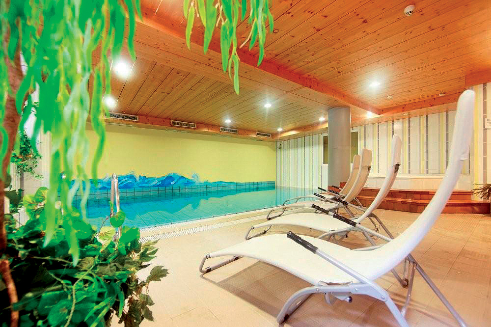 bazén 10 x 6 m, bazén 8 x 4 m, vonkajší vyhrievaný bazén 20 x 6 m, vírivka až pre 6 osôb, sauna#, vonkajšia sauna#, relaxačný kútik s ležadlami, 4 posilňovacie stroje; služby označené # môžu využívať len osoby od 15 rokov